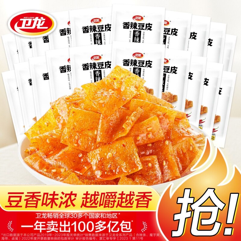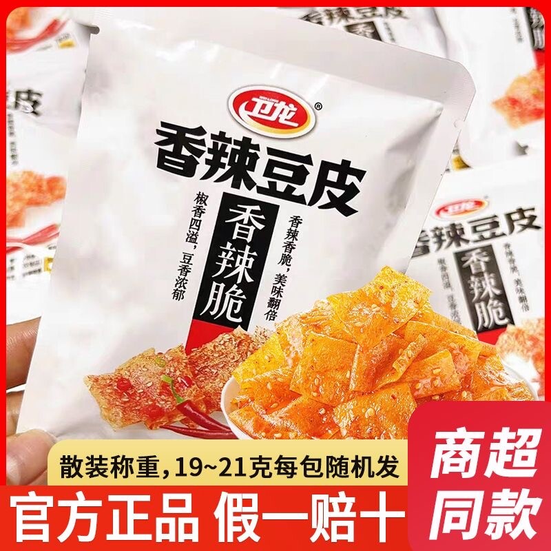 卫龙香辣脆豆皮20包小包装魔芋爽休闲食品网红小零食辣片辣条散装