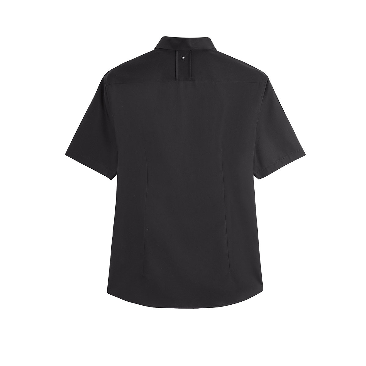 太平鸟男装 纯色短袖衬衫夏季撞色字母刺绣黑色修身商务休闲衬衣