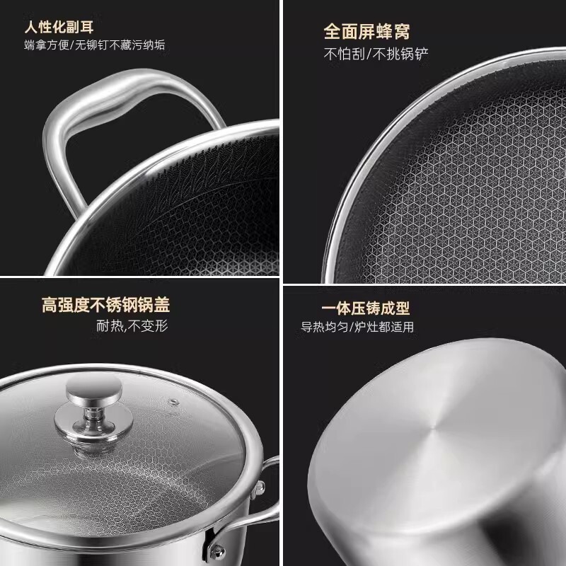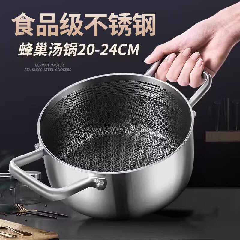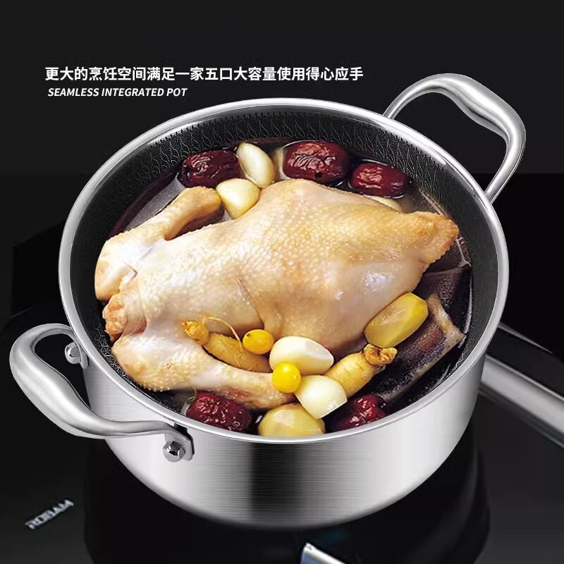 康巴赫款不锈钢汤锅家用不粘锅双耳蒸煮炖汤锅食品级电磁炉加厚熬