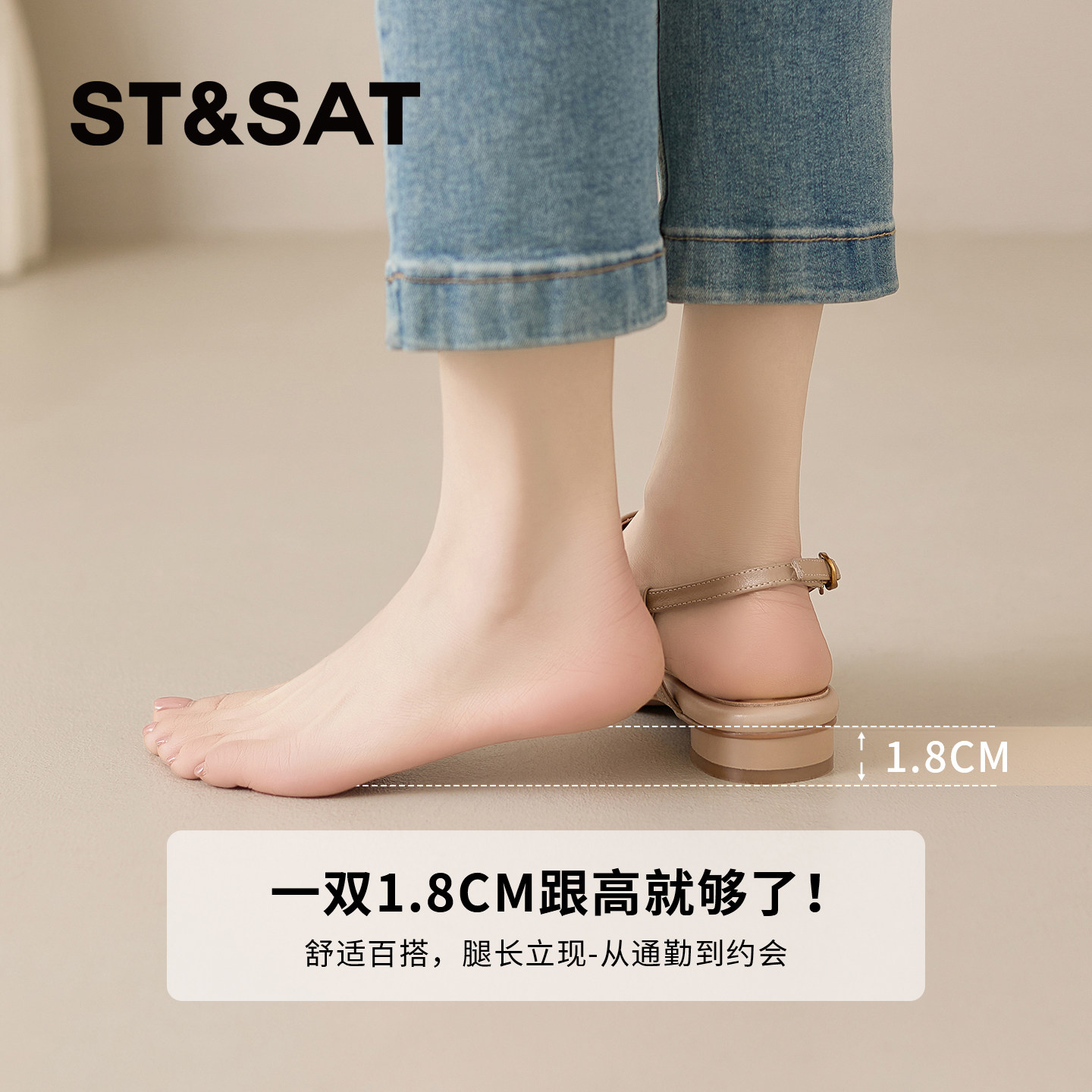 星期六包头凉鞋2026夏季巨好看杏色真皮镂空编织低跟罗马风女鞋子
