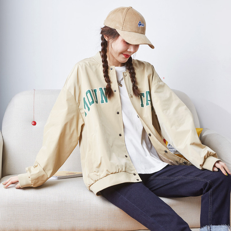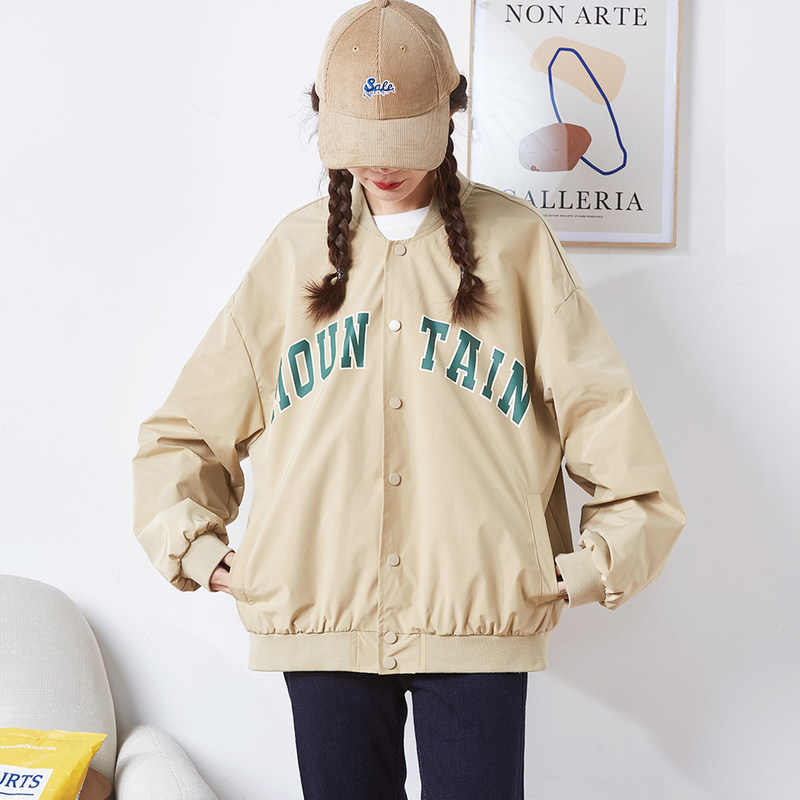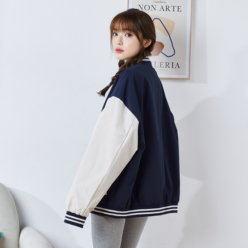 森马外套女连帽插肩袖宽松秋季潮流刺绣撞色夹克美式复古-TK