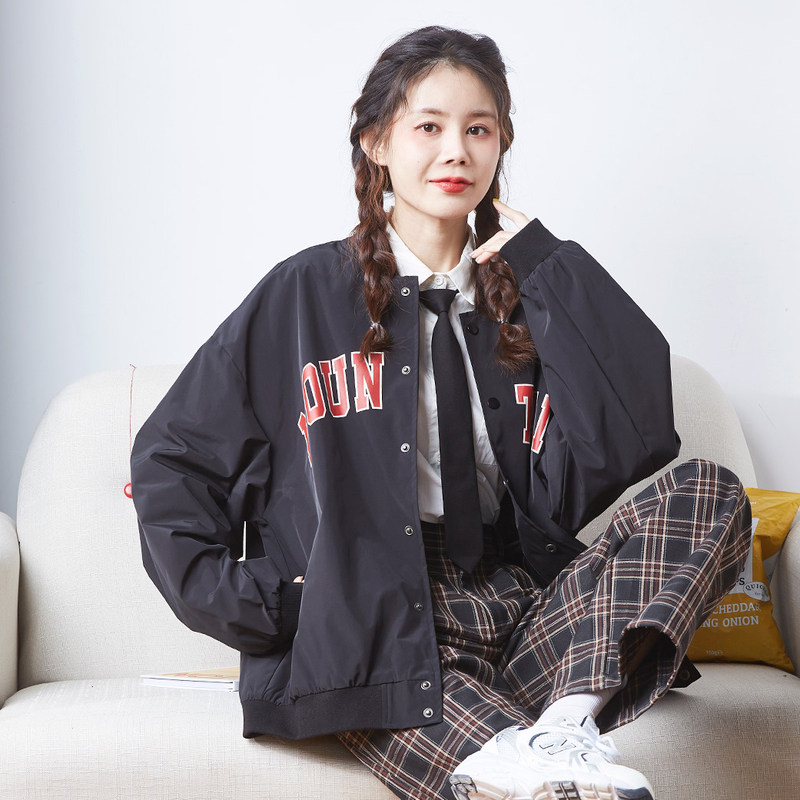唐狮春秋新款女士外套休闲夹克时尚宽松棒球服高级黑色上衣气质