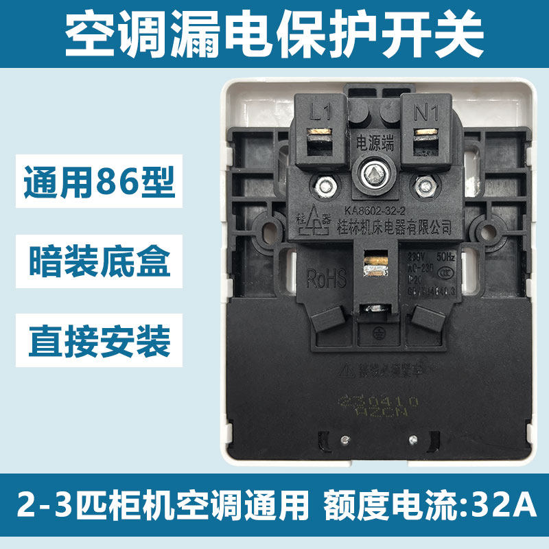 美的热水器漏电保护开关家用86型空开空调插座插头32A 断路器
