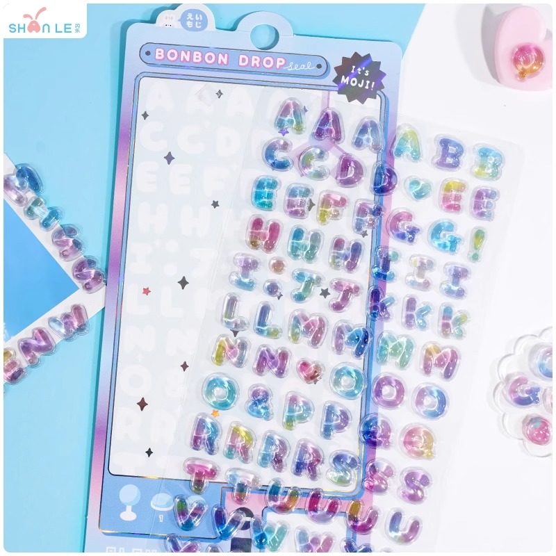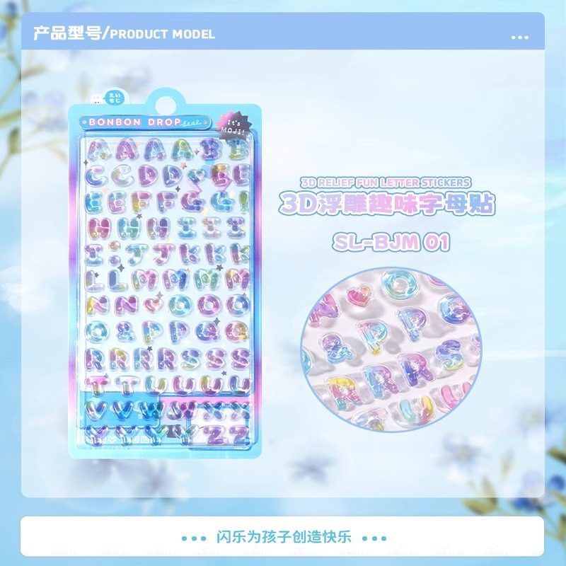 高颜值3d立体浮雕儿童女孩宝石水晶贴纸卡通英文字母粘贴手账装饰