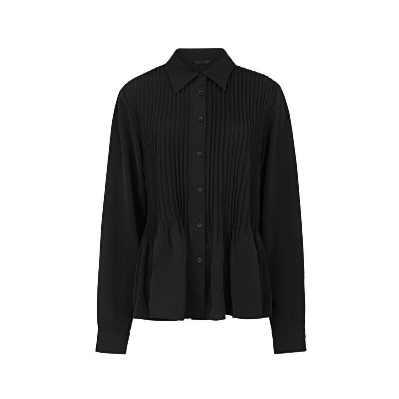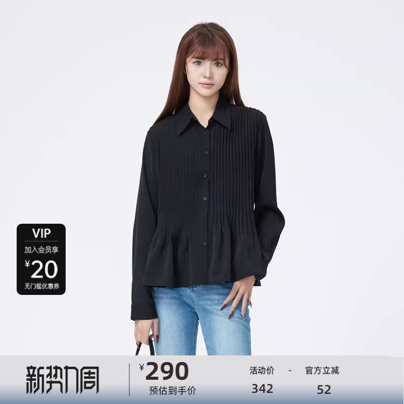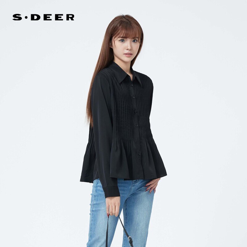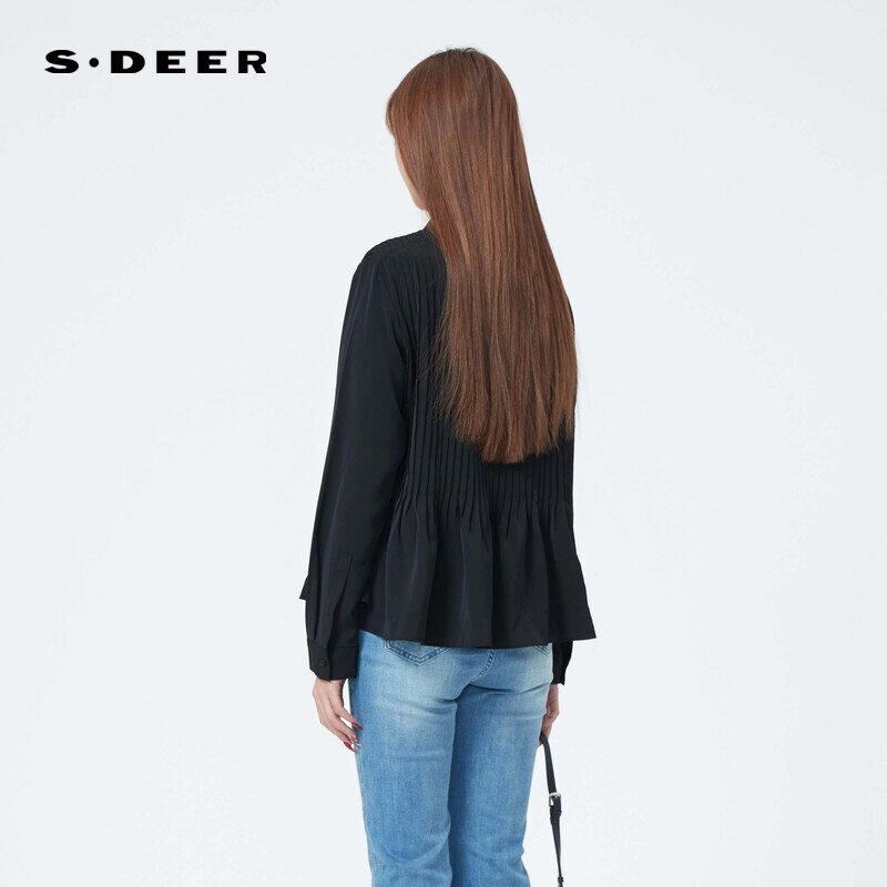 sdeer圣迪奥女装休闲翻领风琴褶垂坠雪纺衬衫S23480502