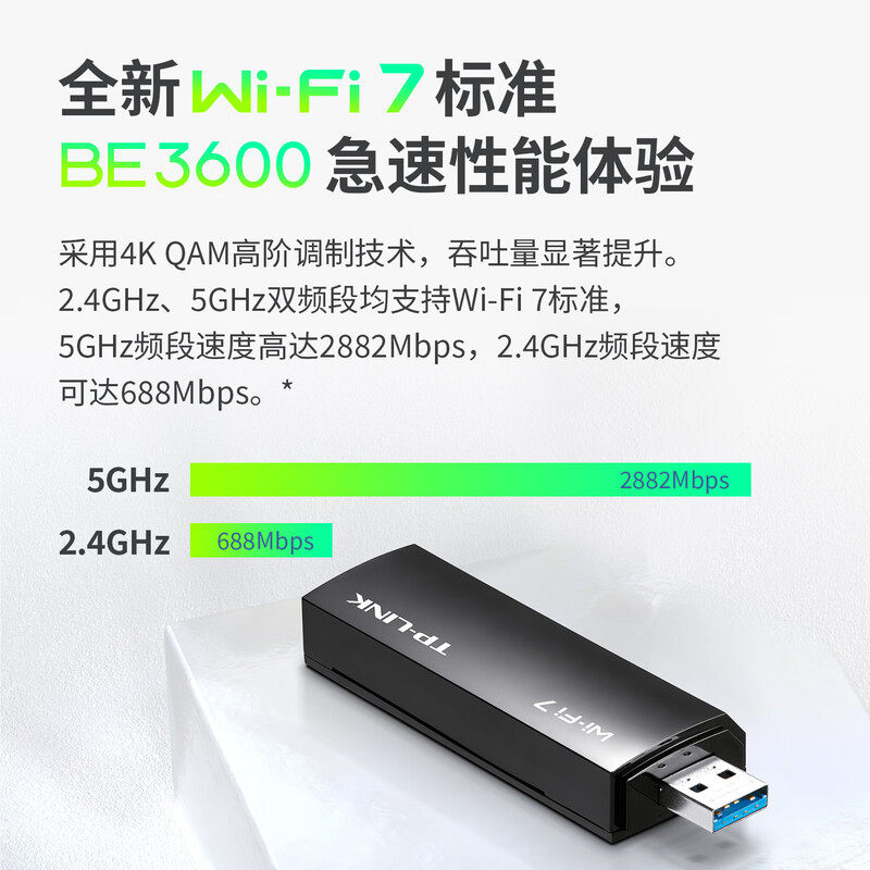 普联TP-LINK BE3600 WiFi7双频千兆USB无线网卡台式机专用 电脑笔记本wifi接收器 5G wifi发射器7DN9200免驱