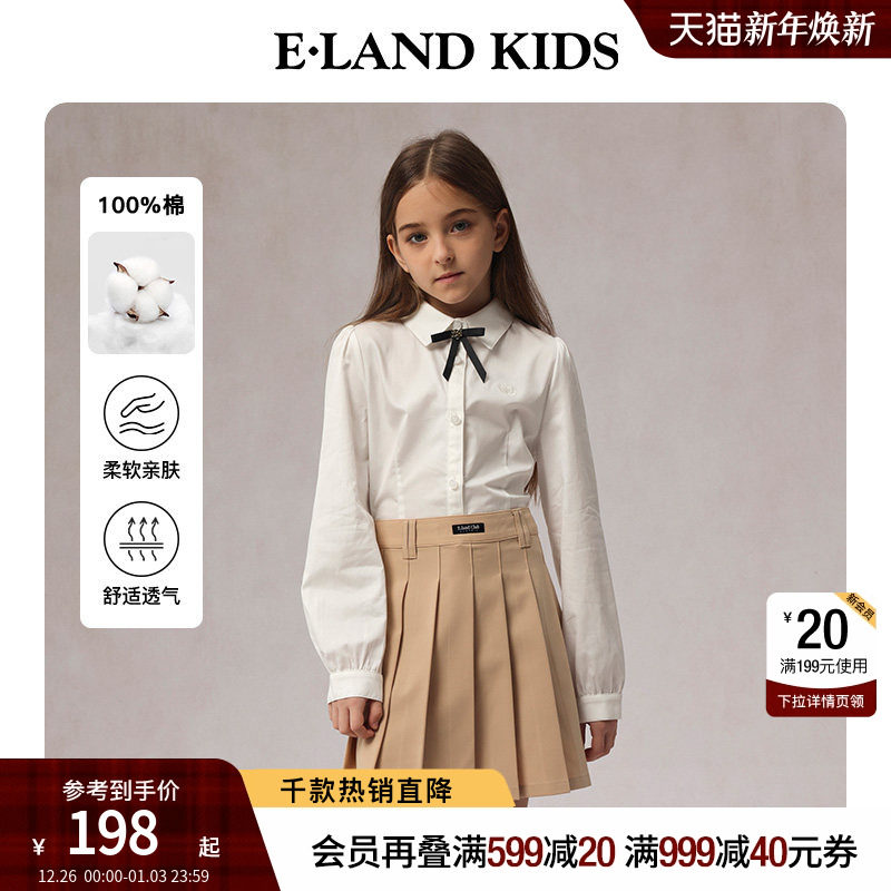 【100%棉】eland kids衣恋童装女童衬衫2025年春秋学院风刺绣上衣