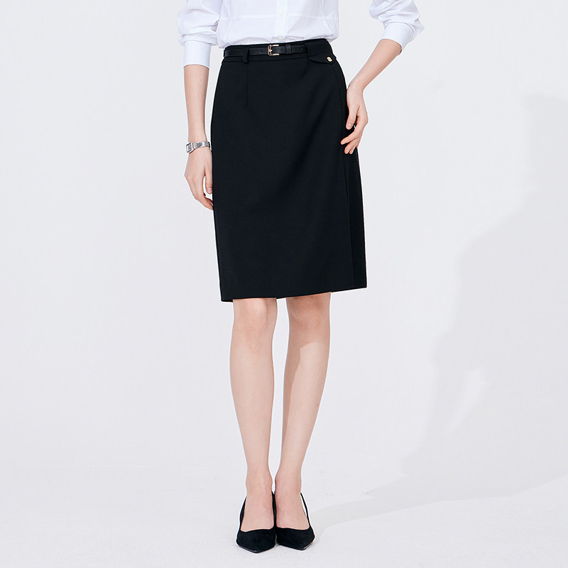 【超值特惠】小野和子黑色西装半身裙秋女高腰显瘦通勤中长裙TK