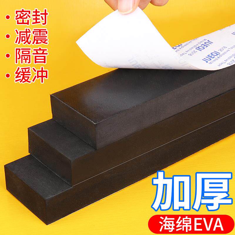 eva海绵胶带单面黑色泡棉泡沫海棉条防震垫条缓冲防撞汽车隔音强力粘胶带单面密封条泡棉垫5-10-15-20mm加厚