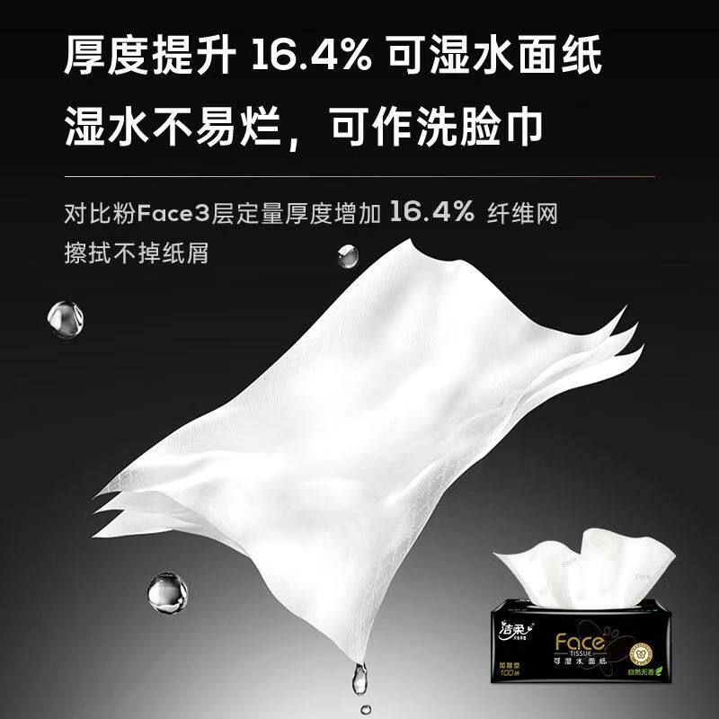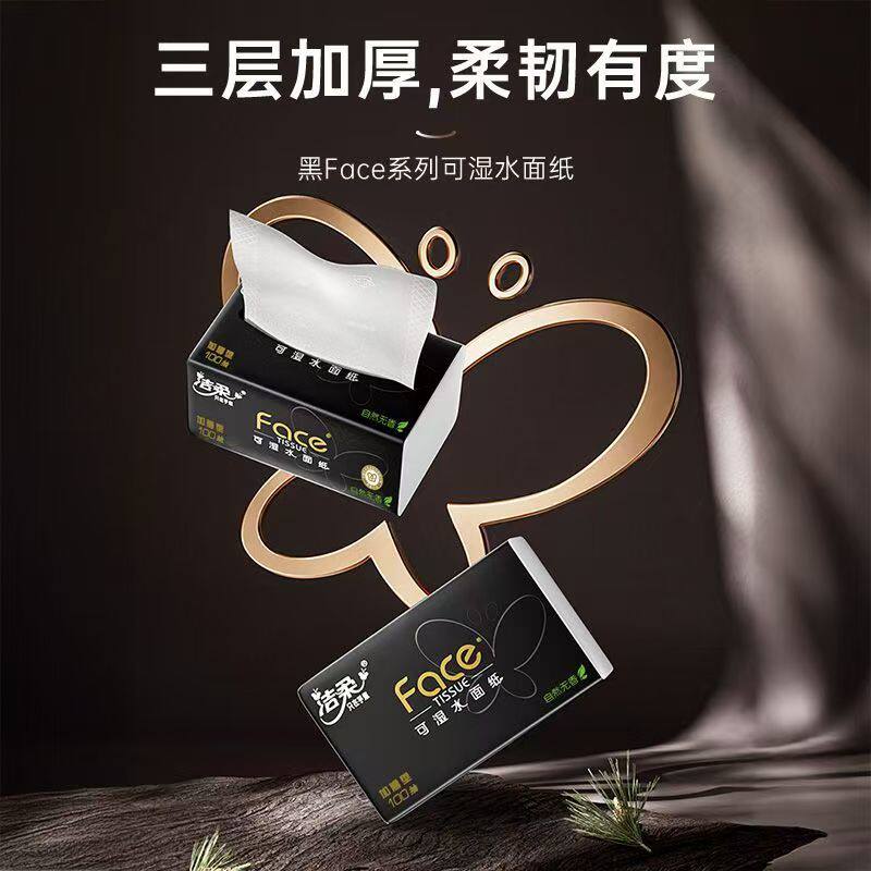 【洁柔】无香味抽纸黑100软抽纸巾湿水面巾纸餐巾纸卫生纸擦手纸