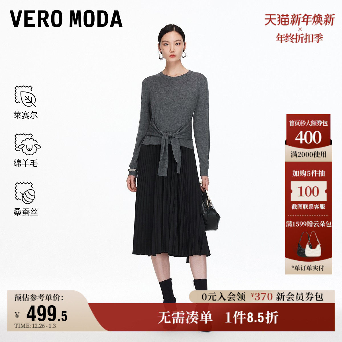 Vero Moda奥莱连衣裙女2025秋冬新款含莱赛尔针织衫中长裙裙子