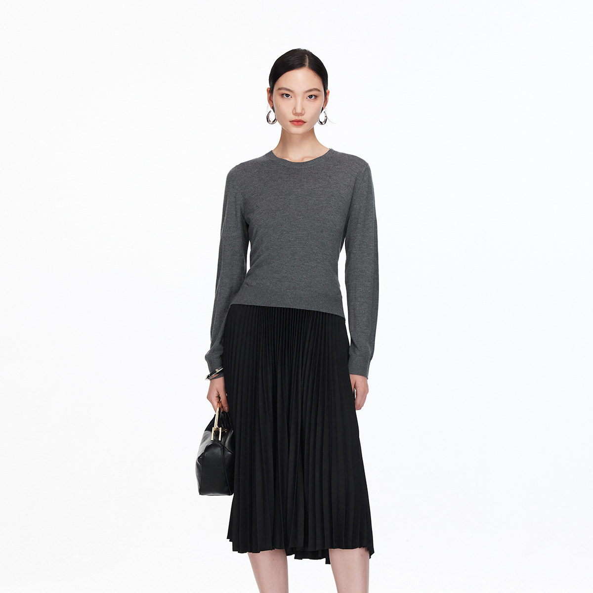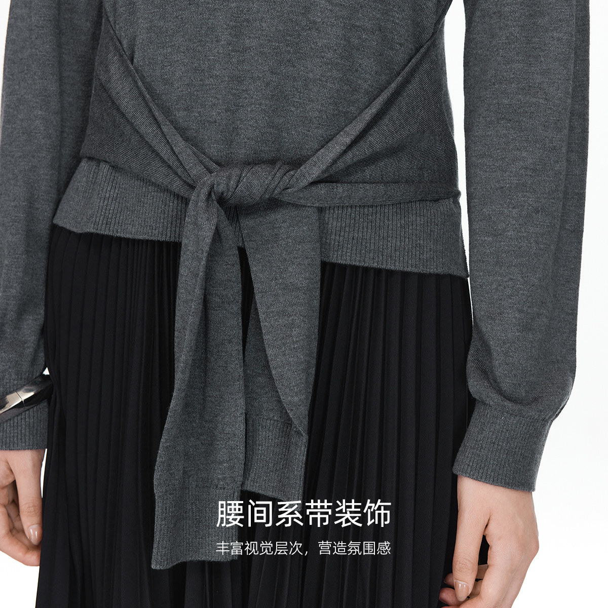 合体版型,勾勒身形,视觉显瘦; 圆领设计