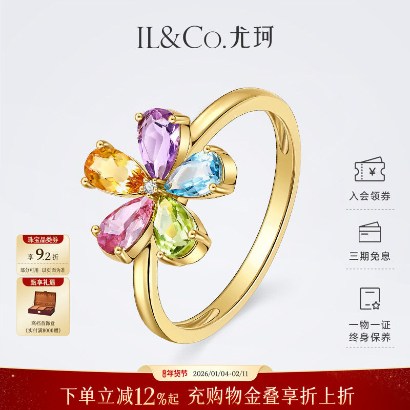 ILCO尤珂「和彩之花」18K金碧玺戒指天然多彩宝石花花型设计女戒