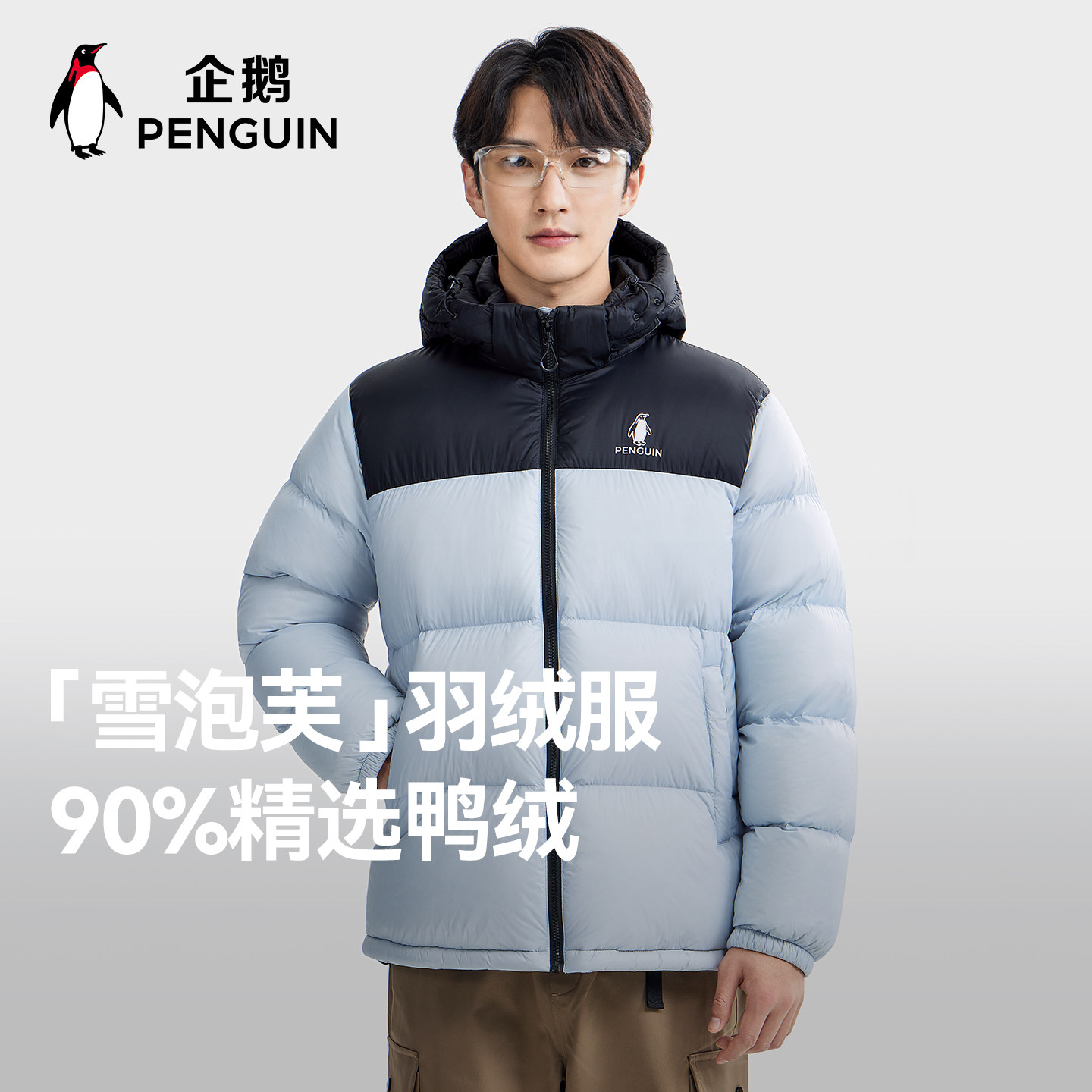 企鹅粉色90鸭绒羽绒服女款2025冬季新款加厚连帽短款面包服外套男
