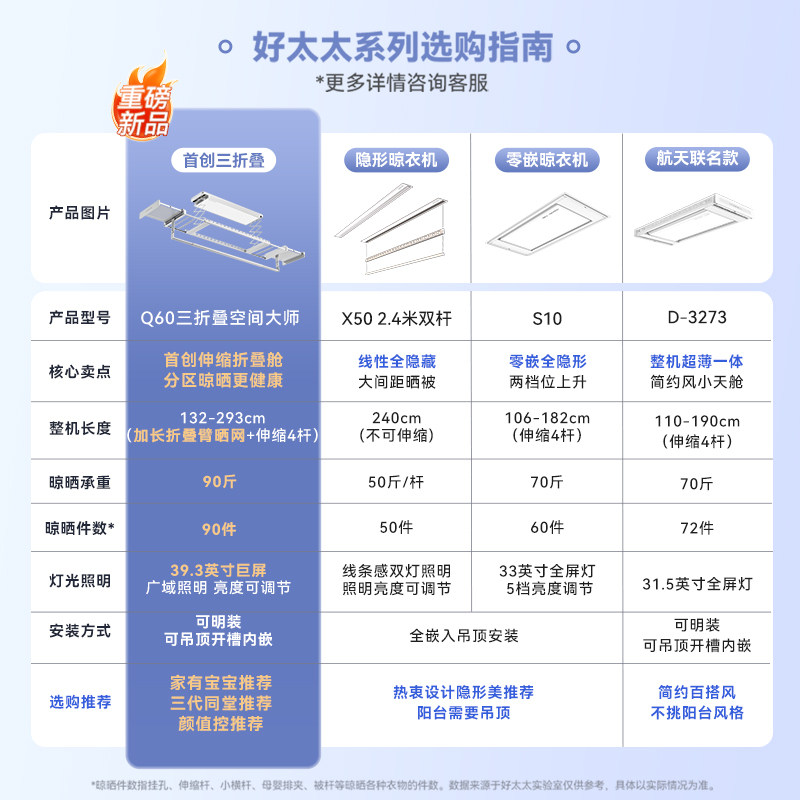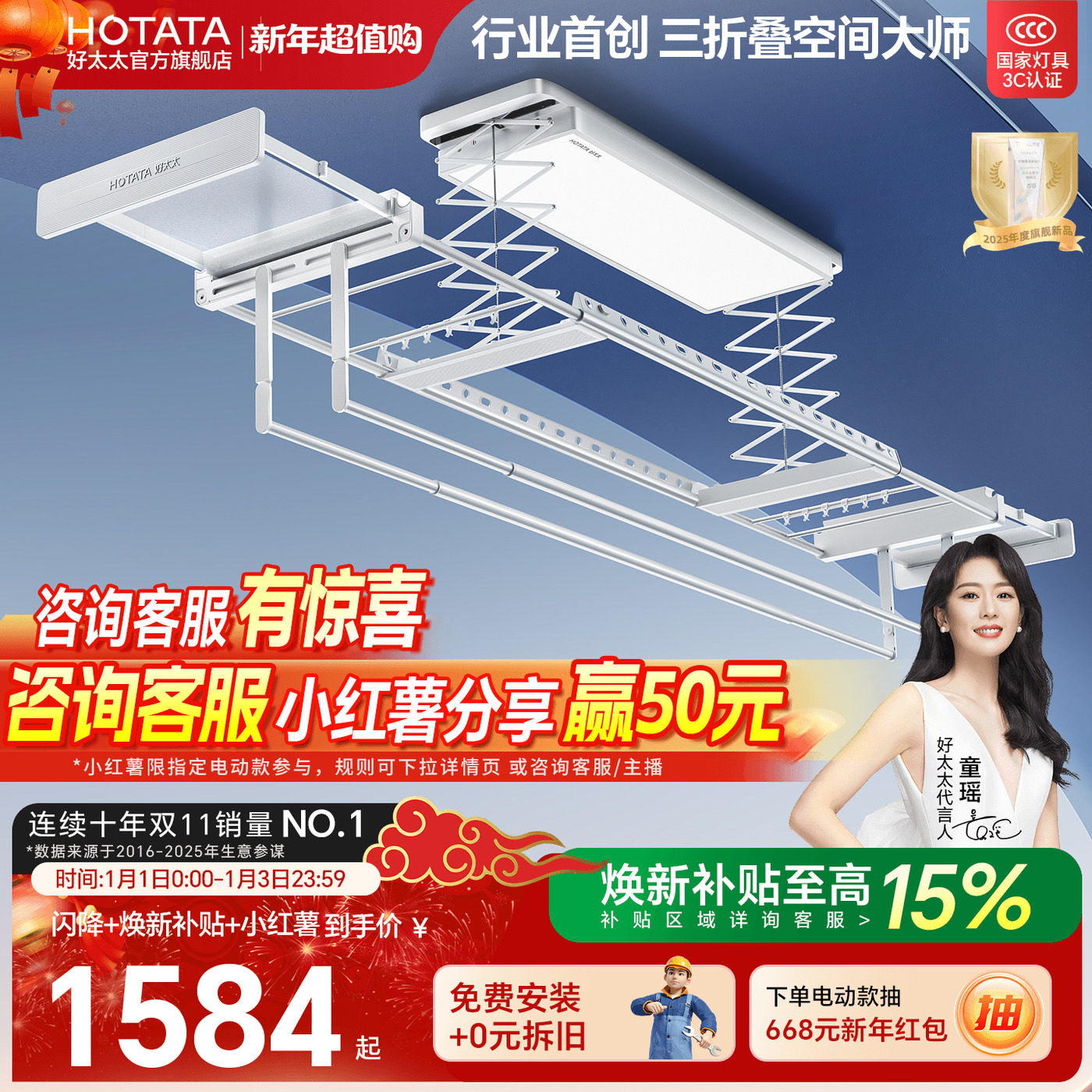 【重磅新品】好太太三折叠空间大师电动晾衣架家用阳台升降晾衣机