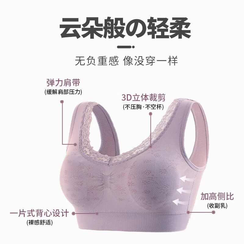 中老年妈妈无钢圈内衣女纯棉大码文胸背心式薄款无痕亲肤透气内衣