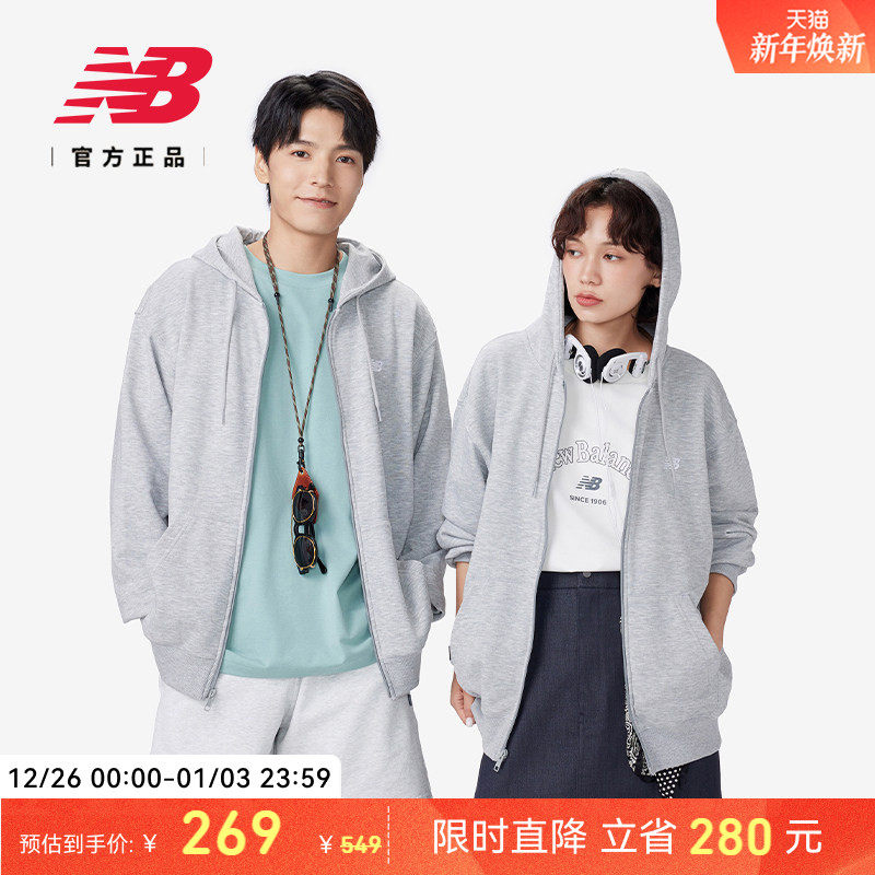 New Balance NB官方正品男女情侣款冬季运动休闲卫衣外套MJ41501