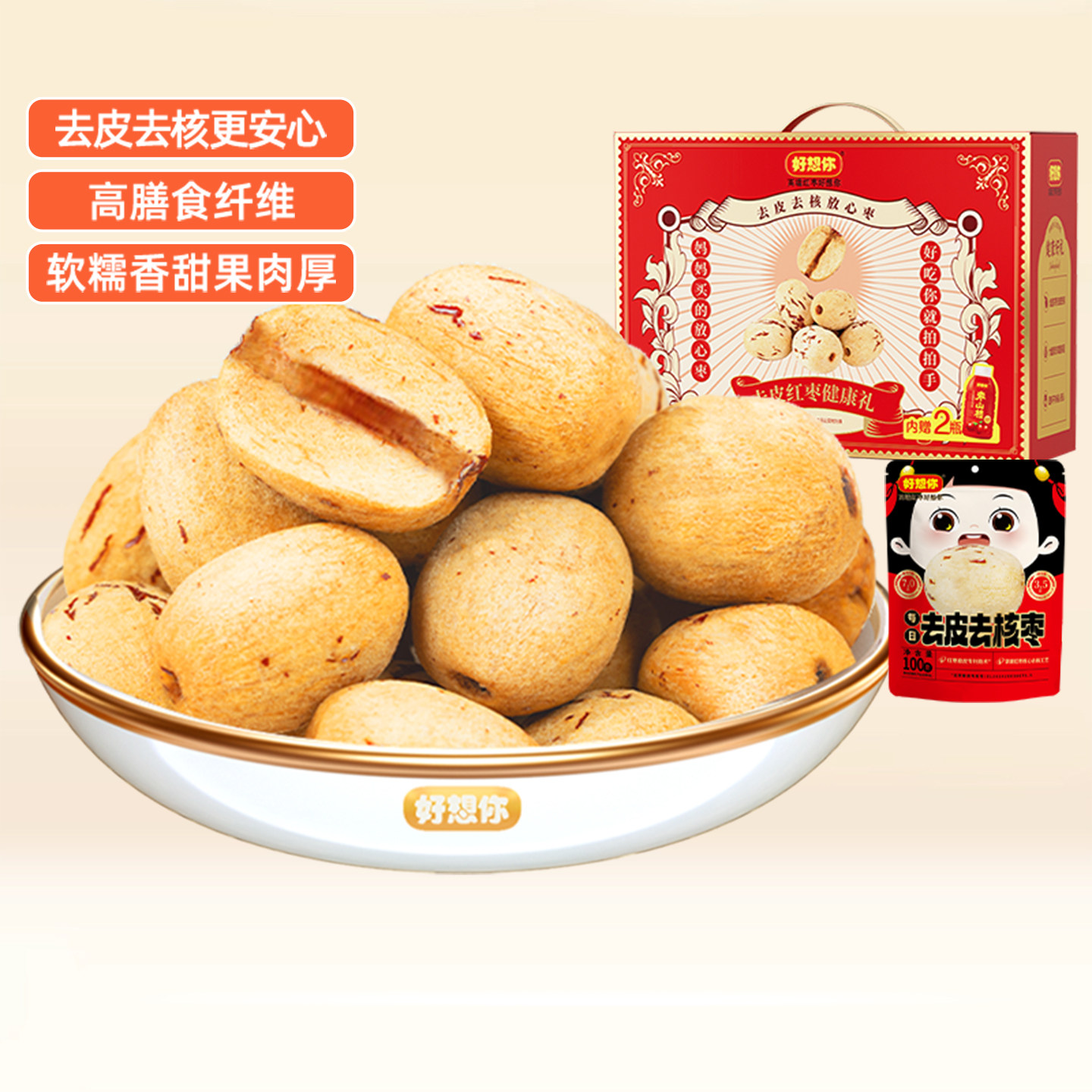 好想你去皮去核红枣新疆特产灰枣即食煲汤打豆浆零食黑金枣