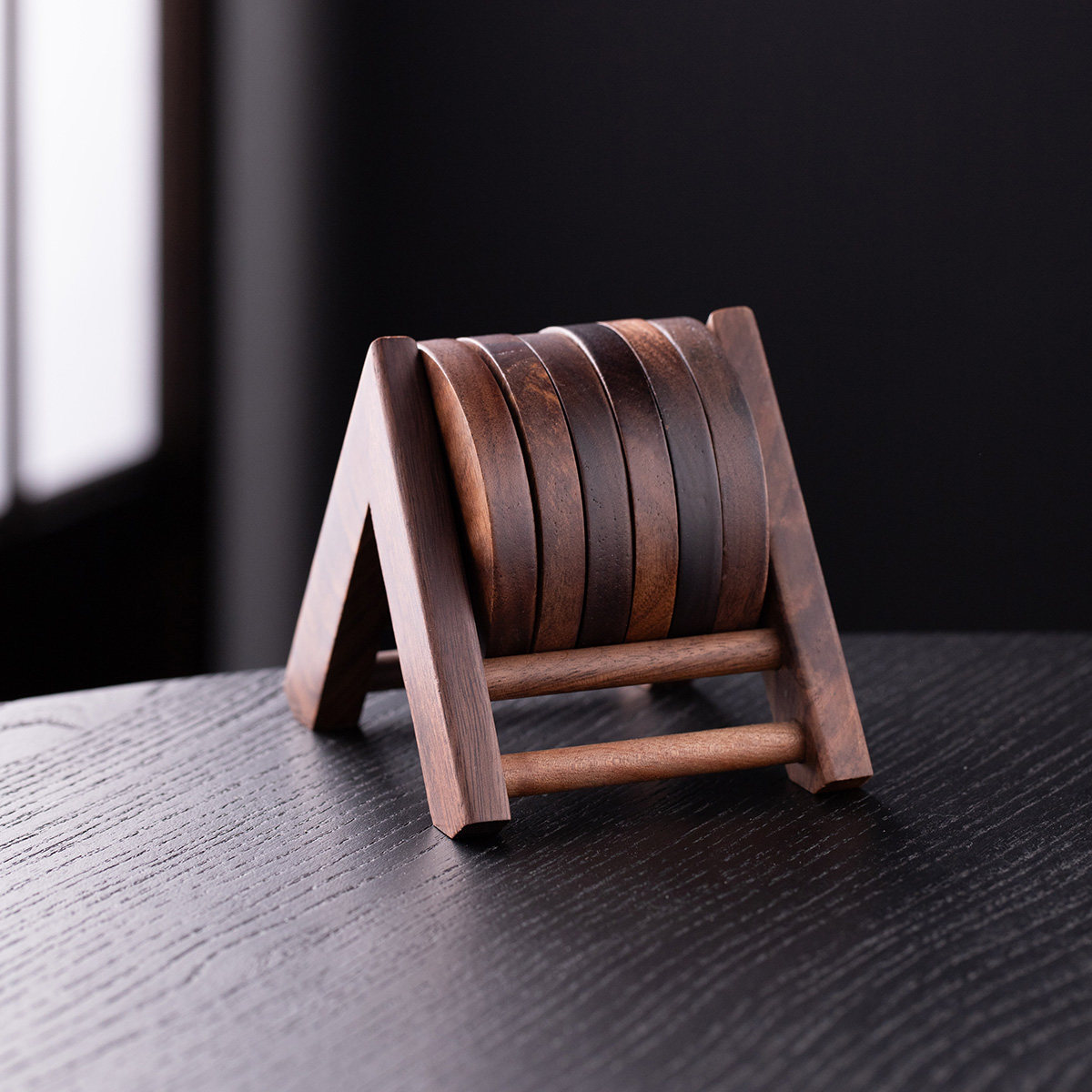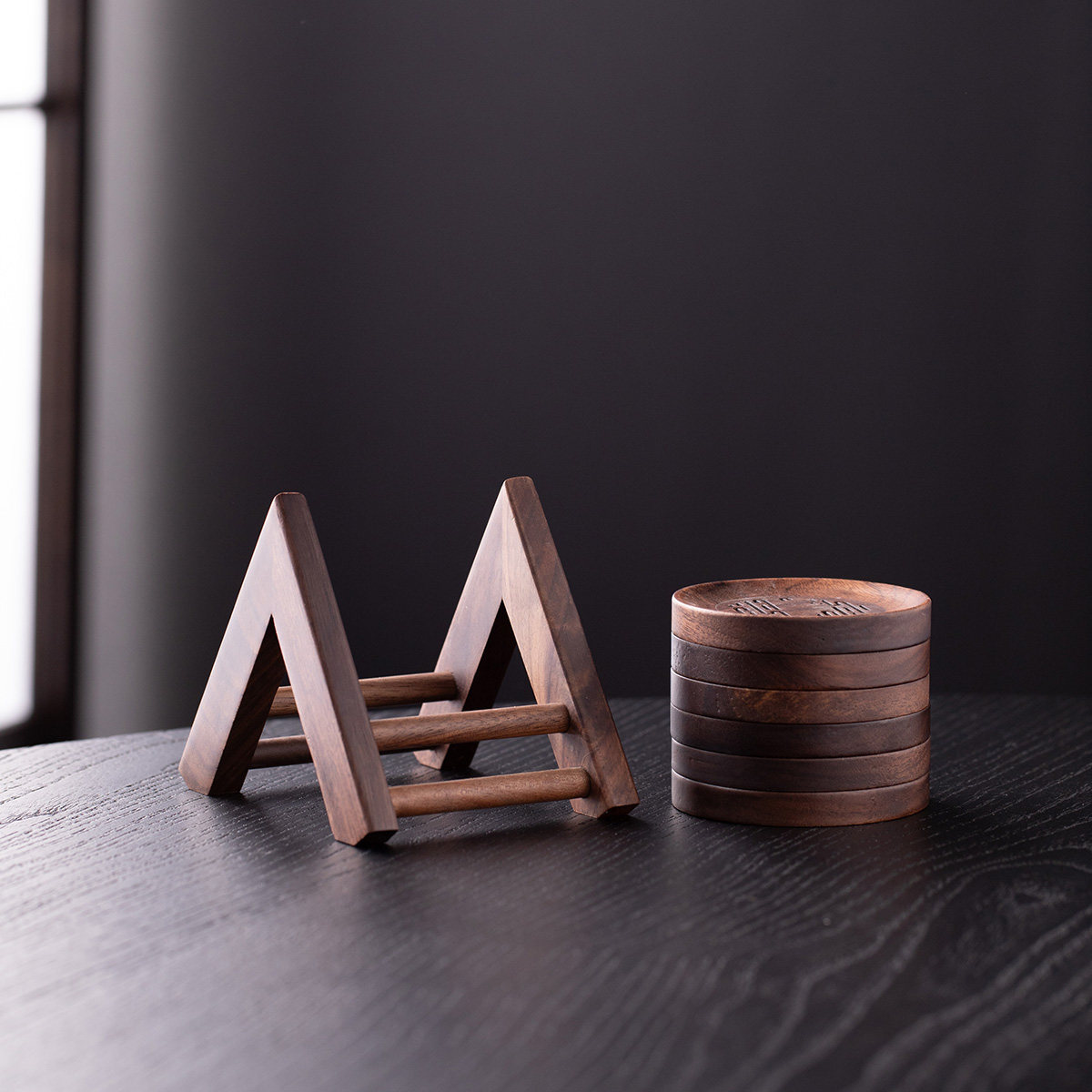 【上隐】胡桃木杯垫中式方形圆手工杯垫隔热茶具杯托防烫杯垫套装