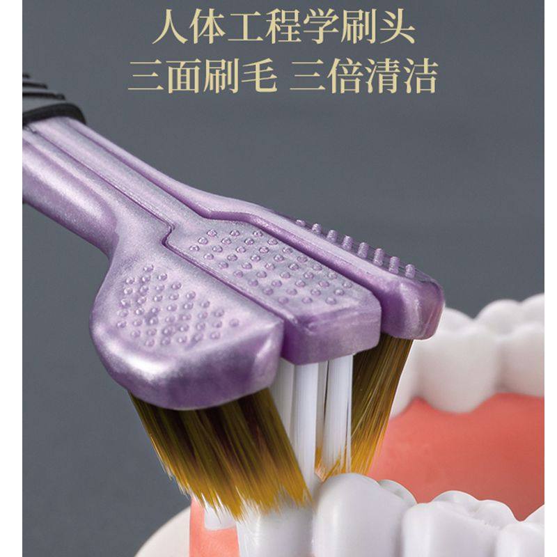 怡宝三面牙刷成人软毛包裹式立体无死角头舌苔清洁护齿家庭装男女