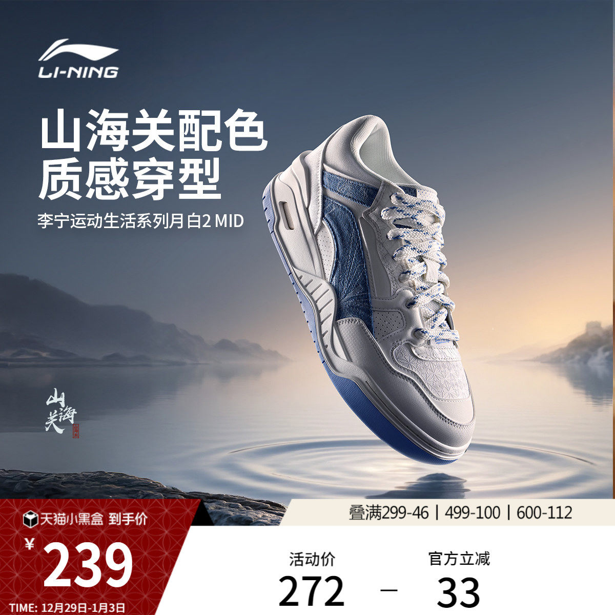 李宁月白2MID | 高帮板鞋女鞋休闲鞋保暖男款新款鞋子礼物运动鞋