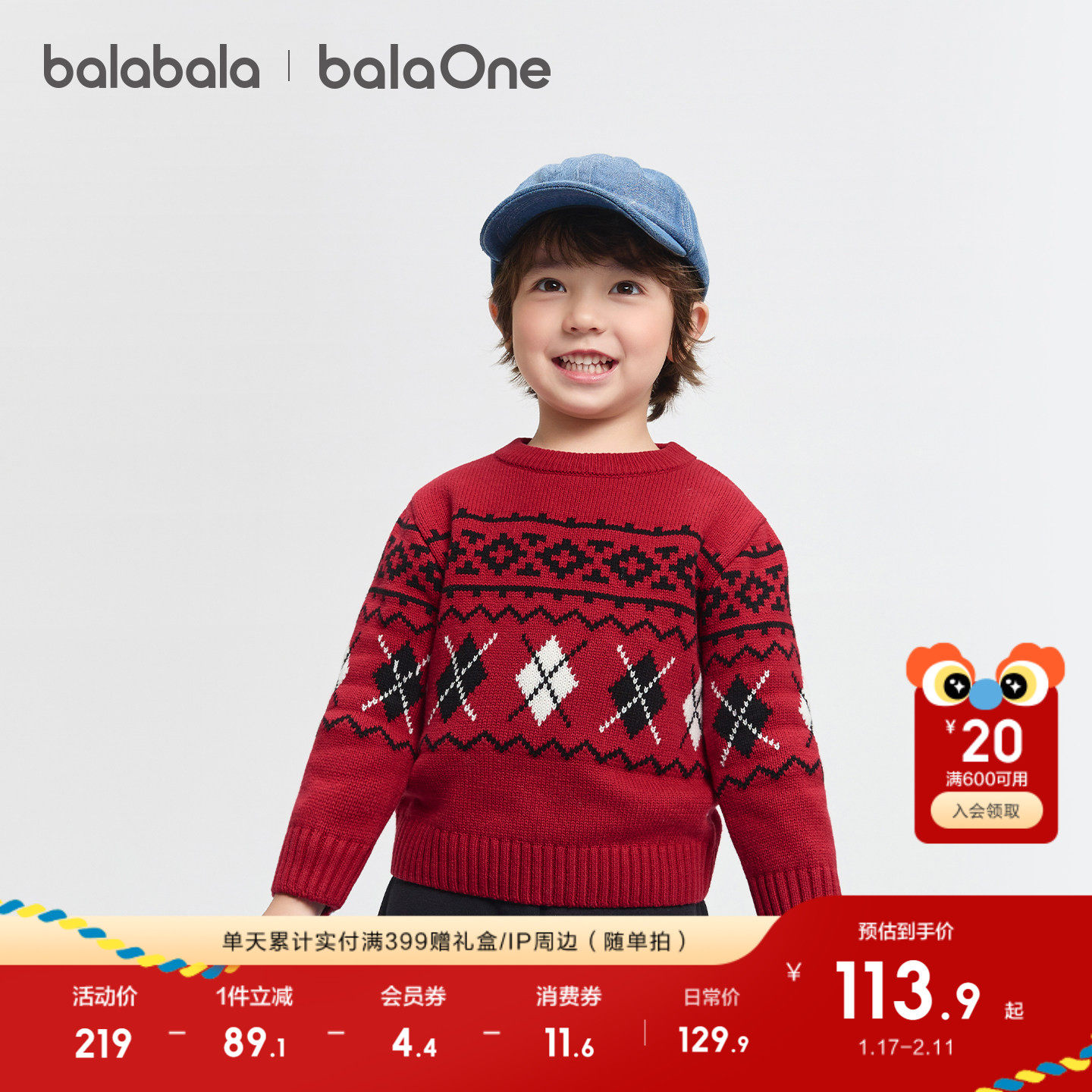 巴拉巴拉童装儿童毛衣男童女童2025冬季新款内搭宝宝针红色拜年服