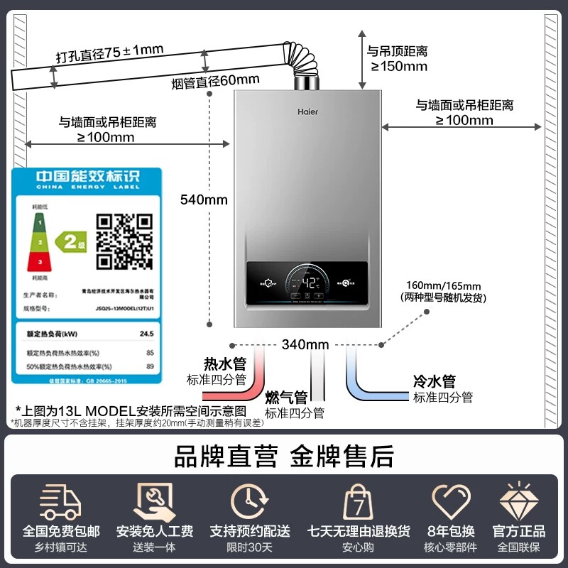 海尔天然气燃气款热水器洗澡家用官方恒温强排式变频16L节能MODEL