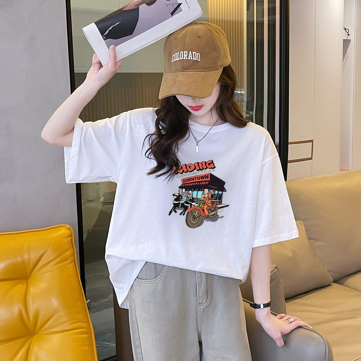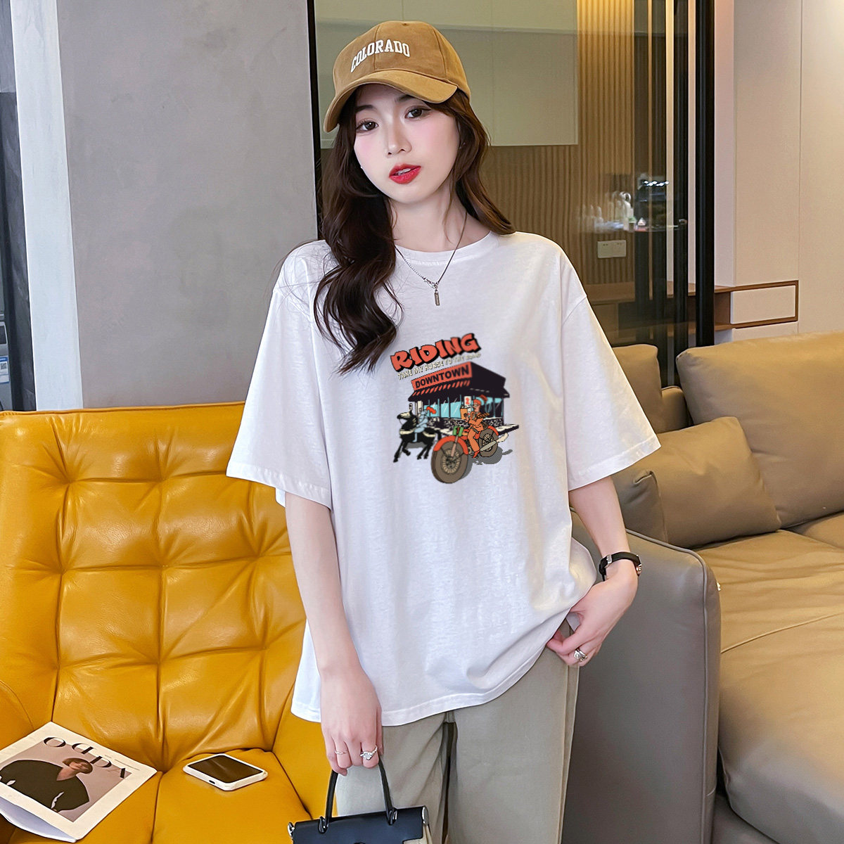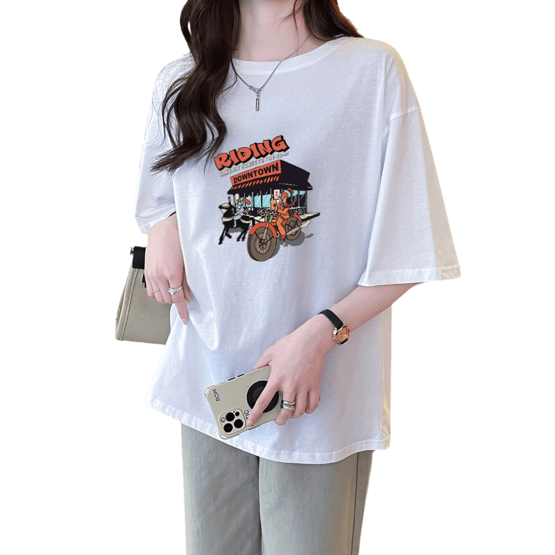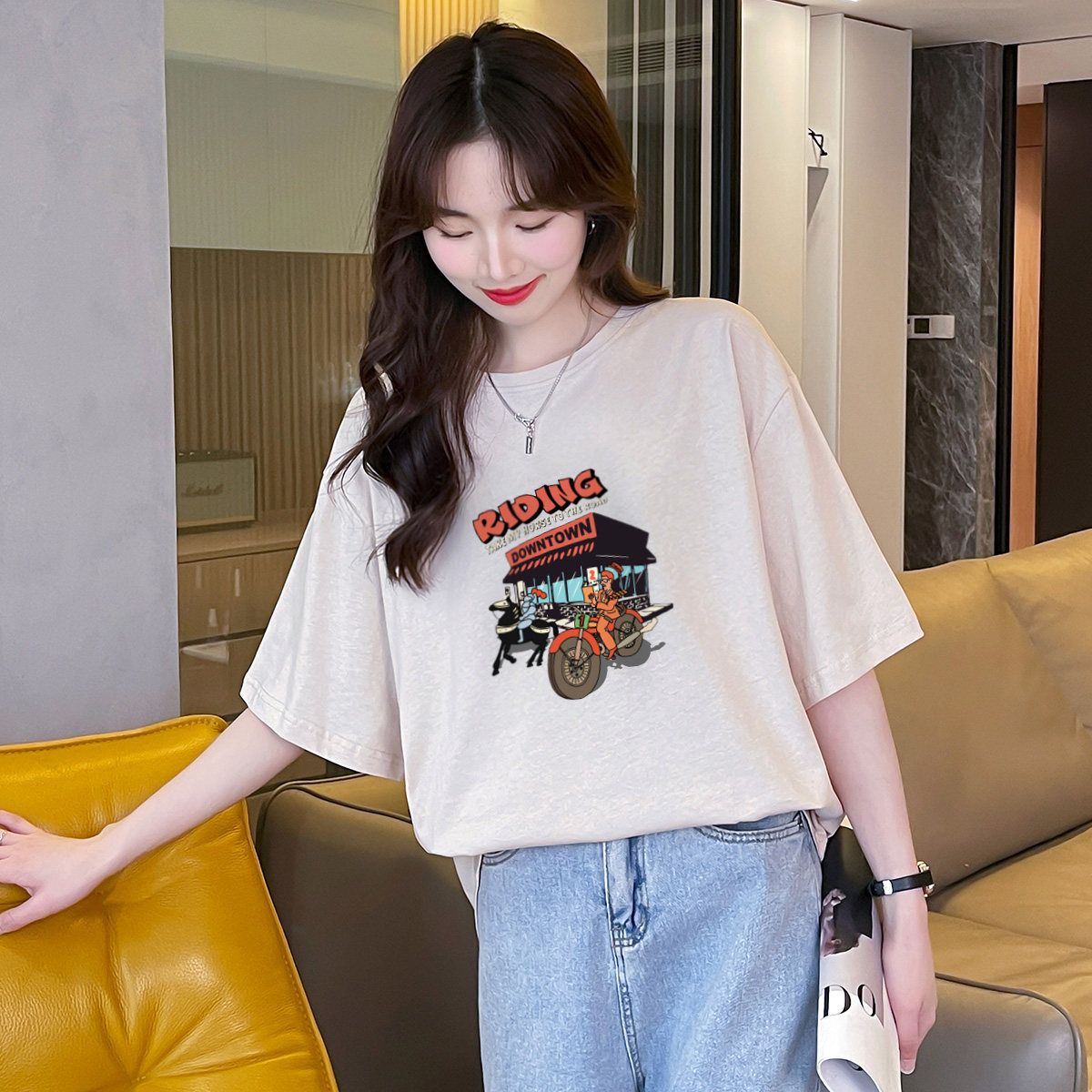 LW真维斯女装2023夏季新款潮印花宽松短袖T恤纯棉美式复古体恤衫