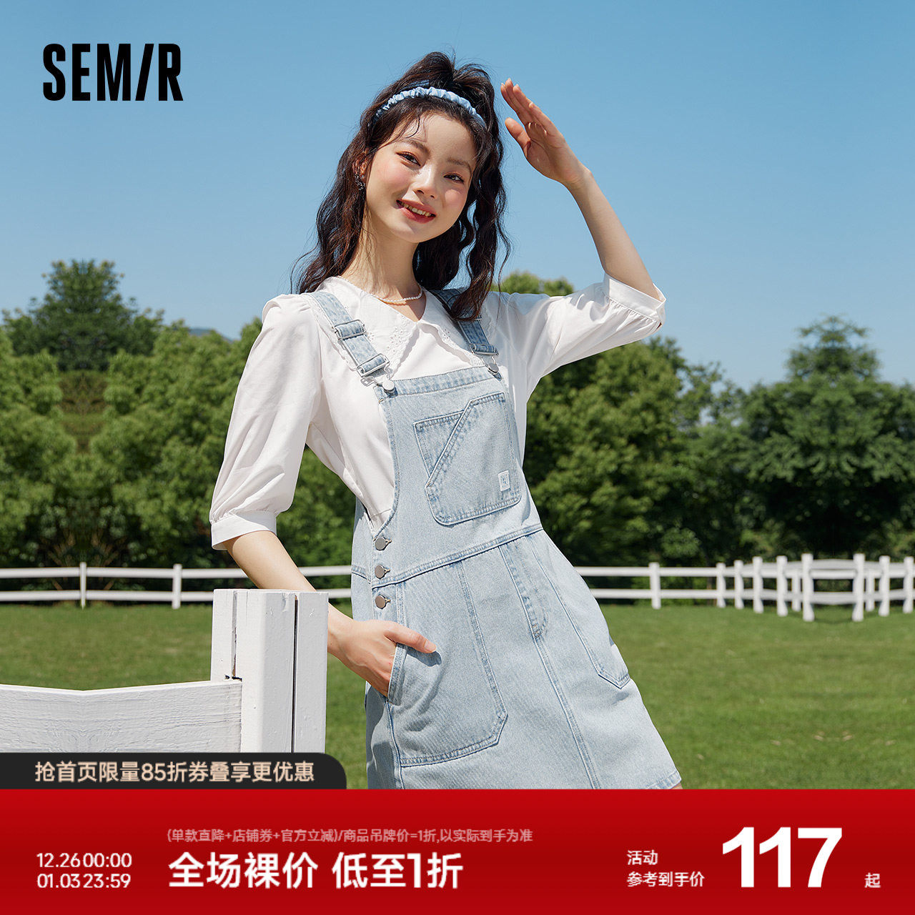 森马牛仔背带裙女显高小个子复古风夏季美式俏皮做旧短裙新款2023