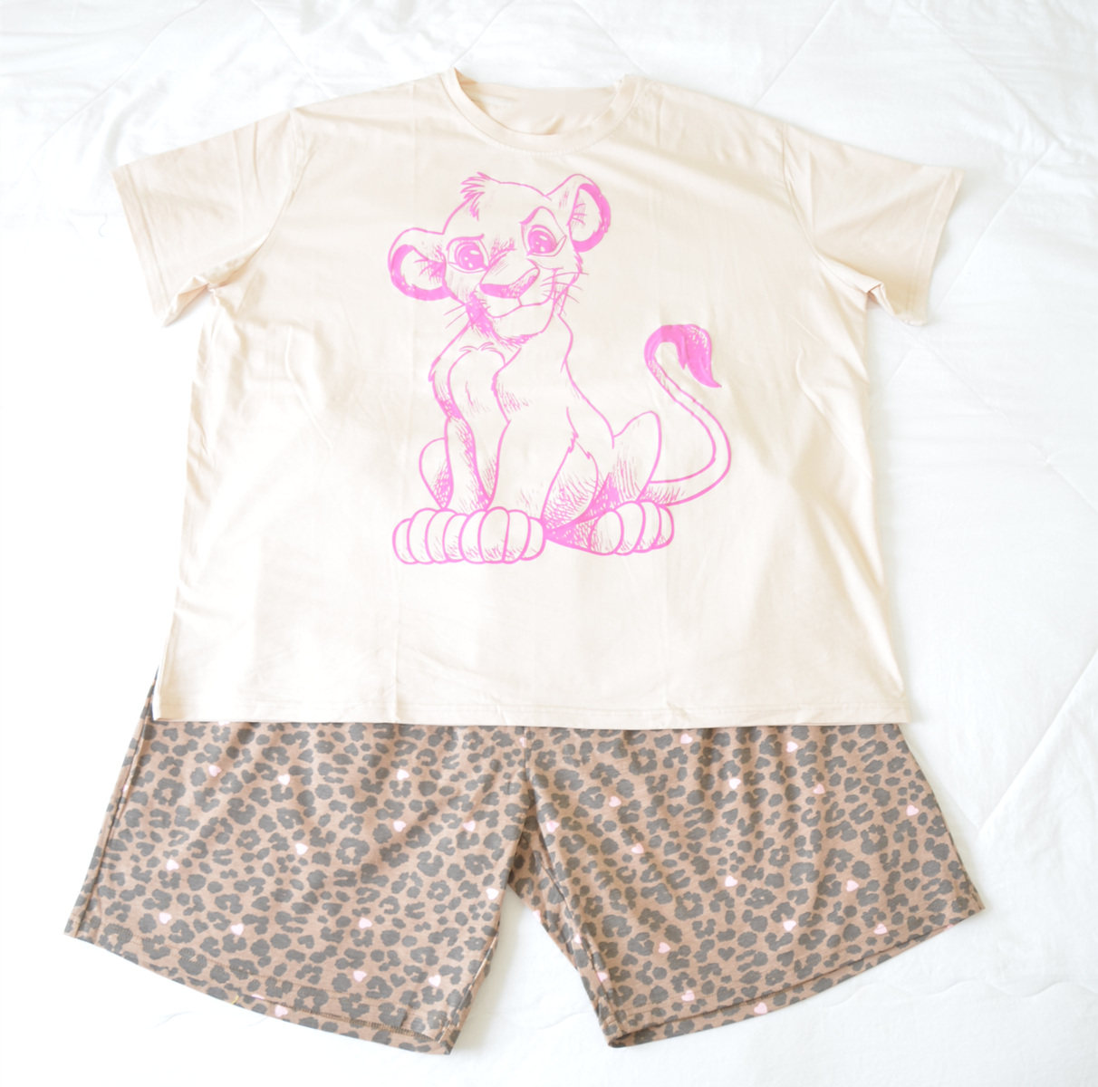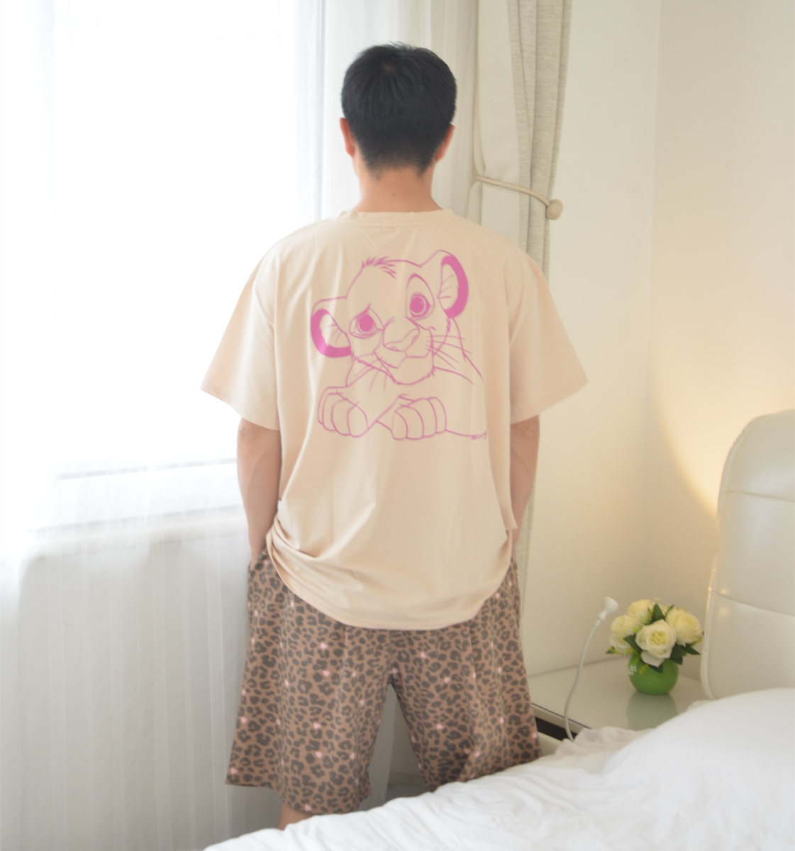 加肥大码卡通狮子情侣睡衣女胖MM夏季短袖短裤纯棉男士休闲家居服