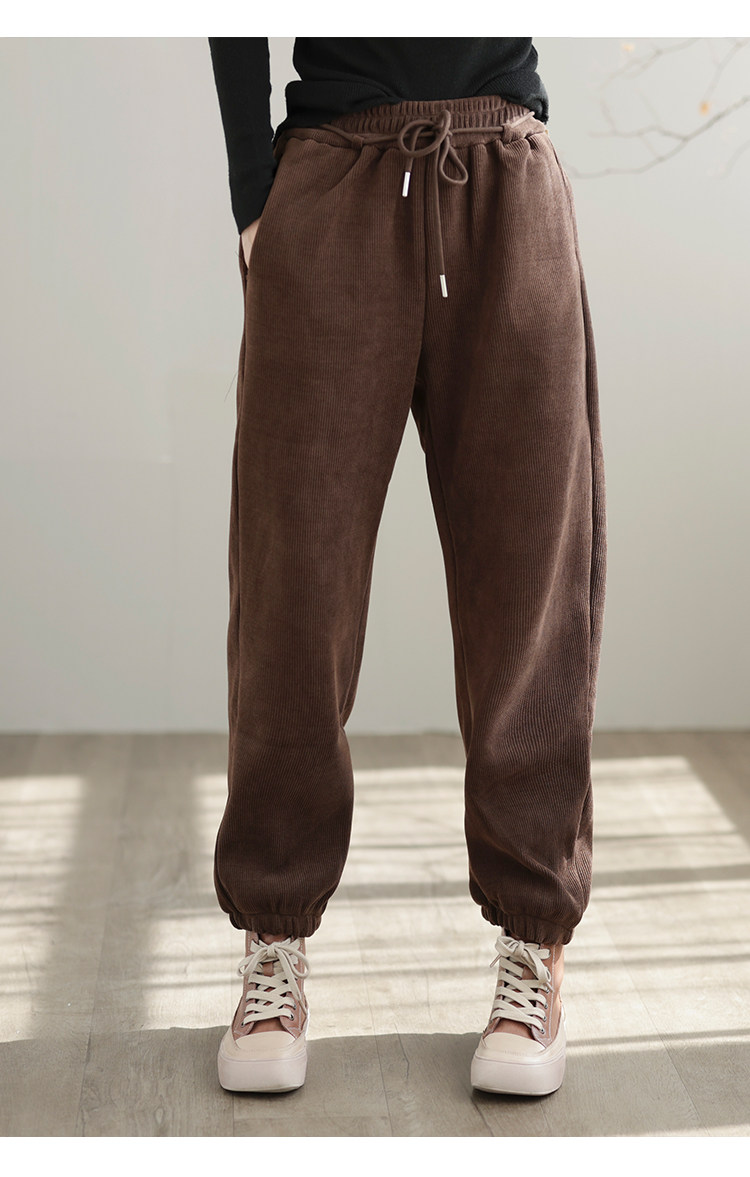 新款休闲裤女2022冬季加绒宽松时尚女款裤子通勤直筒拼接棉哈伦裤