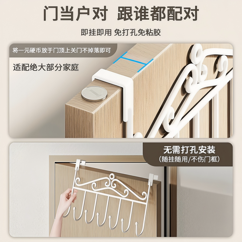 门后挂钩免打孔挂衣置物架衣服壁挂墙上帽子钥匙挂架收纳衣架浴室