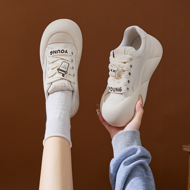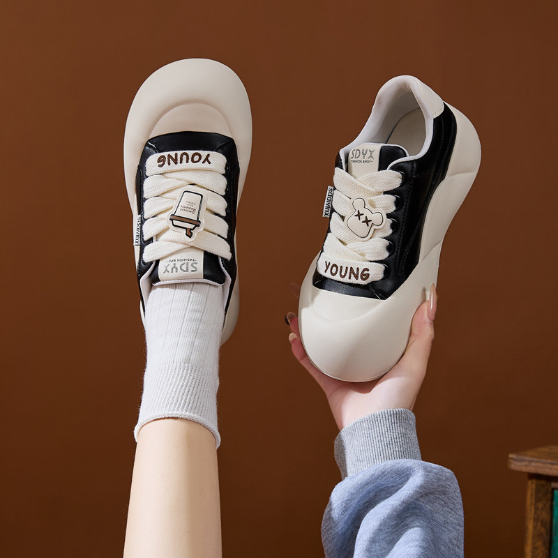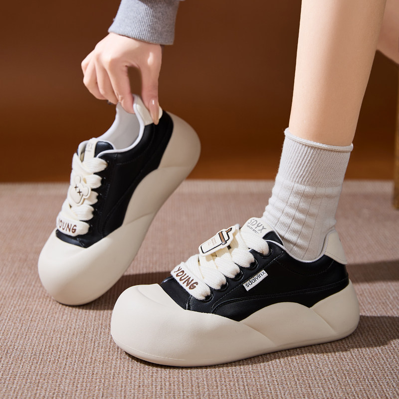 厚底小白鞋2026春季增高6CM丑萌大头鞋透气百搭面包鞋女圆头鞋子