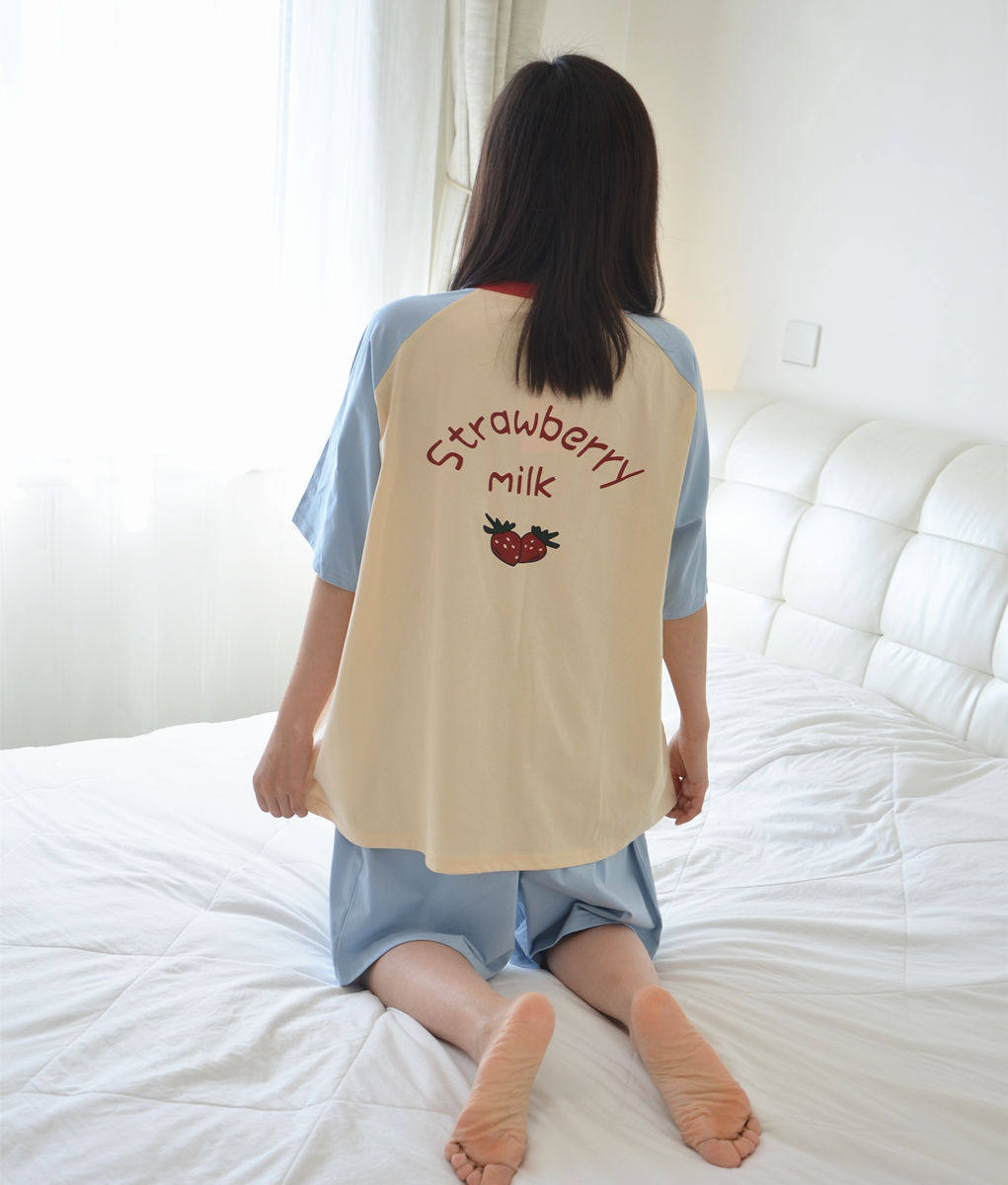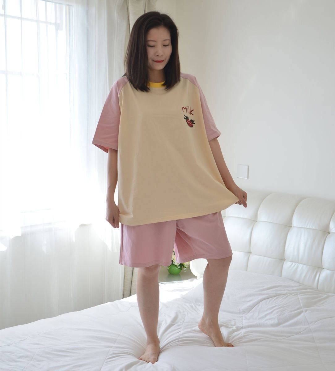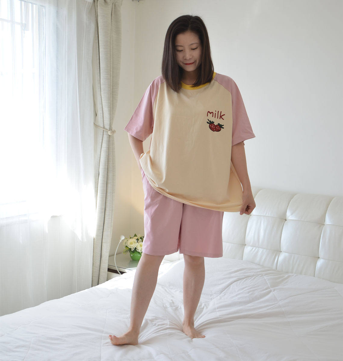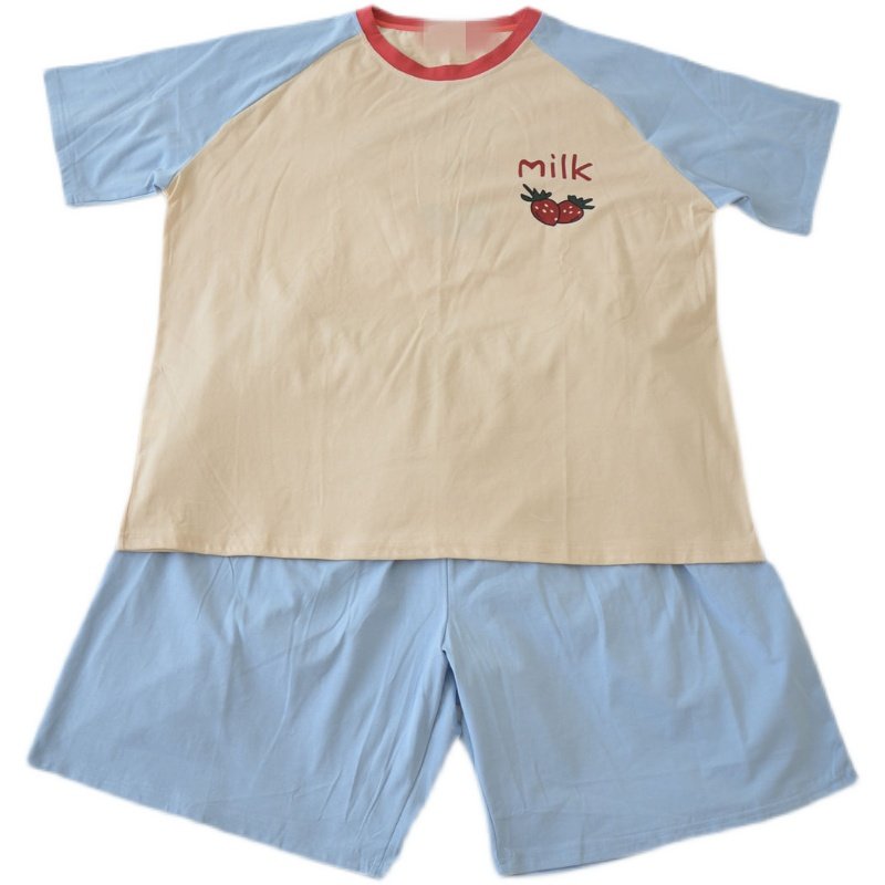 加肥大码牛奶草莓睡衣女夏季纯棉短袖短裤甜美家居服两件套200斤