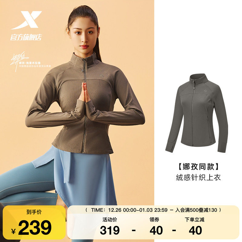 特步运动外套女2025年秋冬健身紧身女装上衣训练风衣975328060025