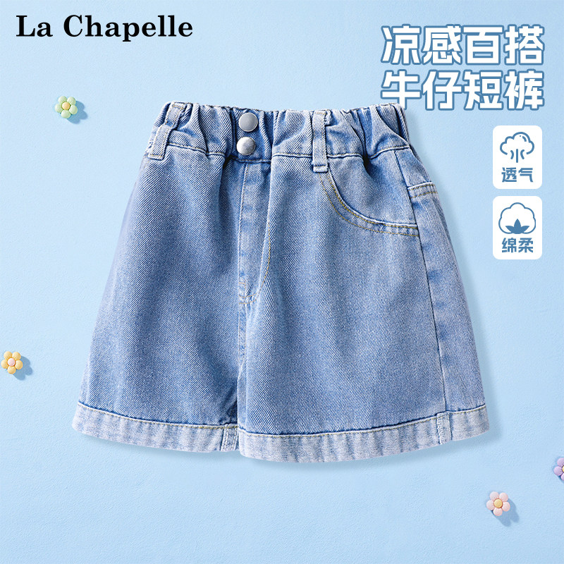 拉夏贝尔女童牛仔裤夏季儿童爱心短裤2025新款大童时髦洋气五分裤