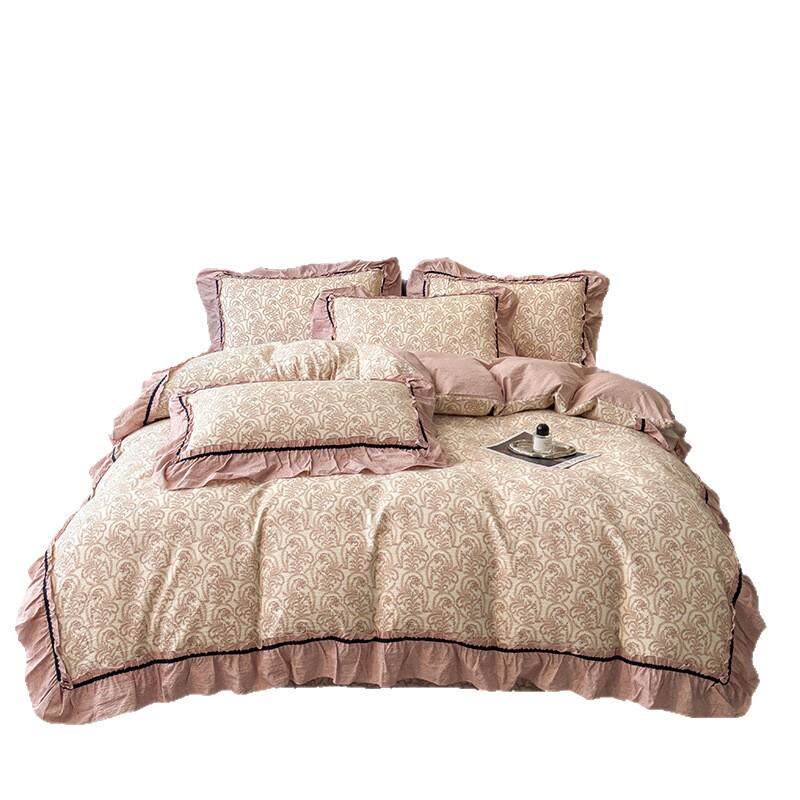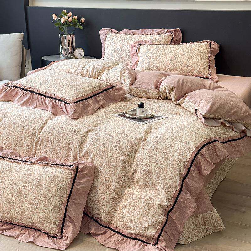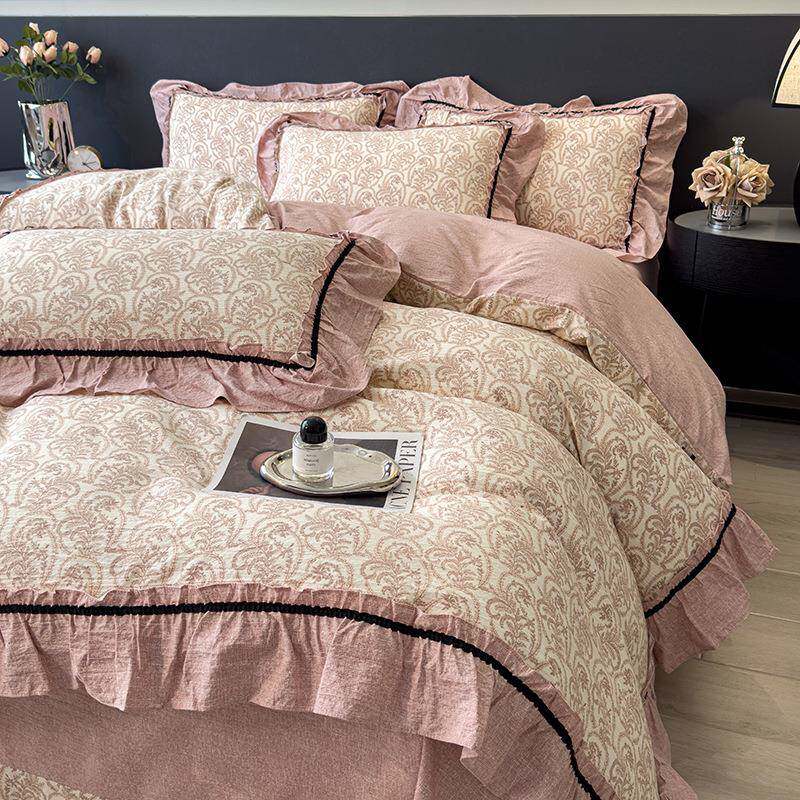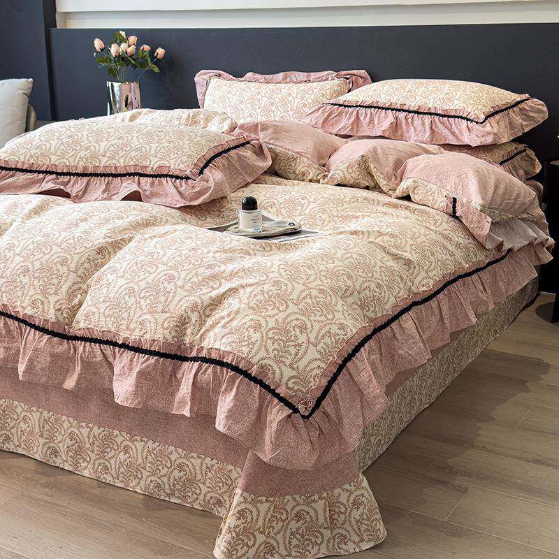 2025新款原麻四件套韩式复古风花边学生宿舍床单被套三件套可机洗