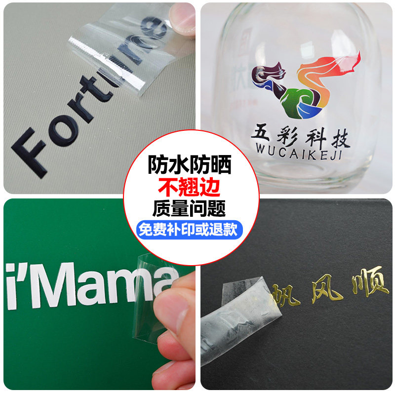 水晶标贴logo贴纸定制金属标签礼品盒立体镂空刻字母透明不干胶防水二维码烫金丝印广告商标热转移贴uv转印贴