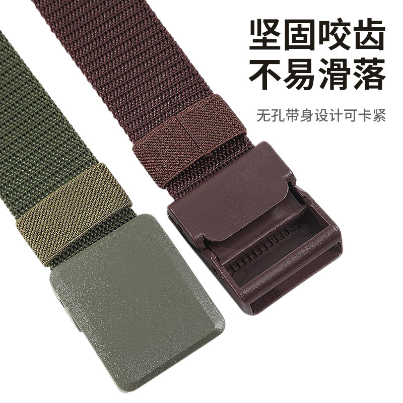 新款无痕男士战术腰带休闲帆布自动扣丙纶无牙学生军训轻便腰链