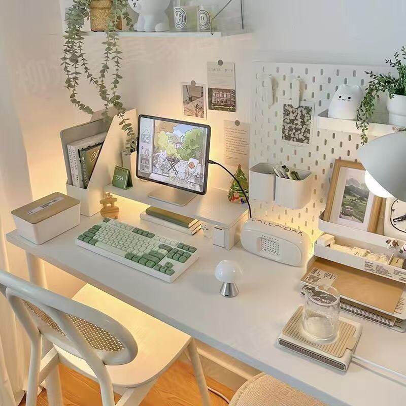 电脑桌家用办公桌卧室学生书桌书架一体带洞洞板简易置物学习桌子