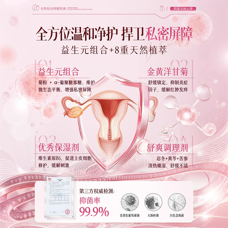 妇炎洁私处清洗液女外阴清洁私密抑菌护理液日常洗护益生菌沐浴露