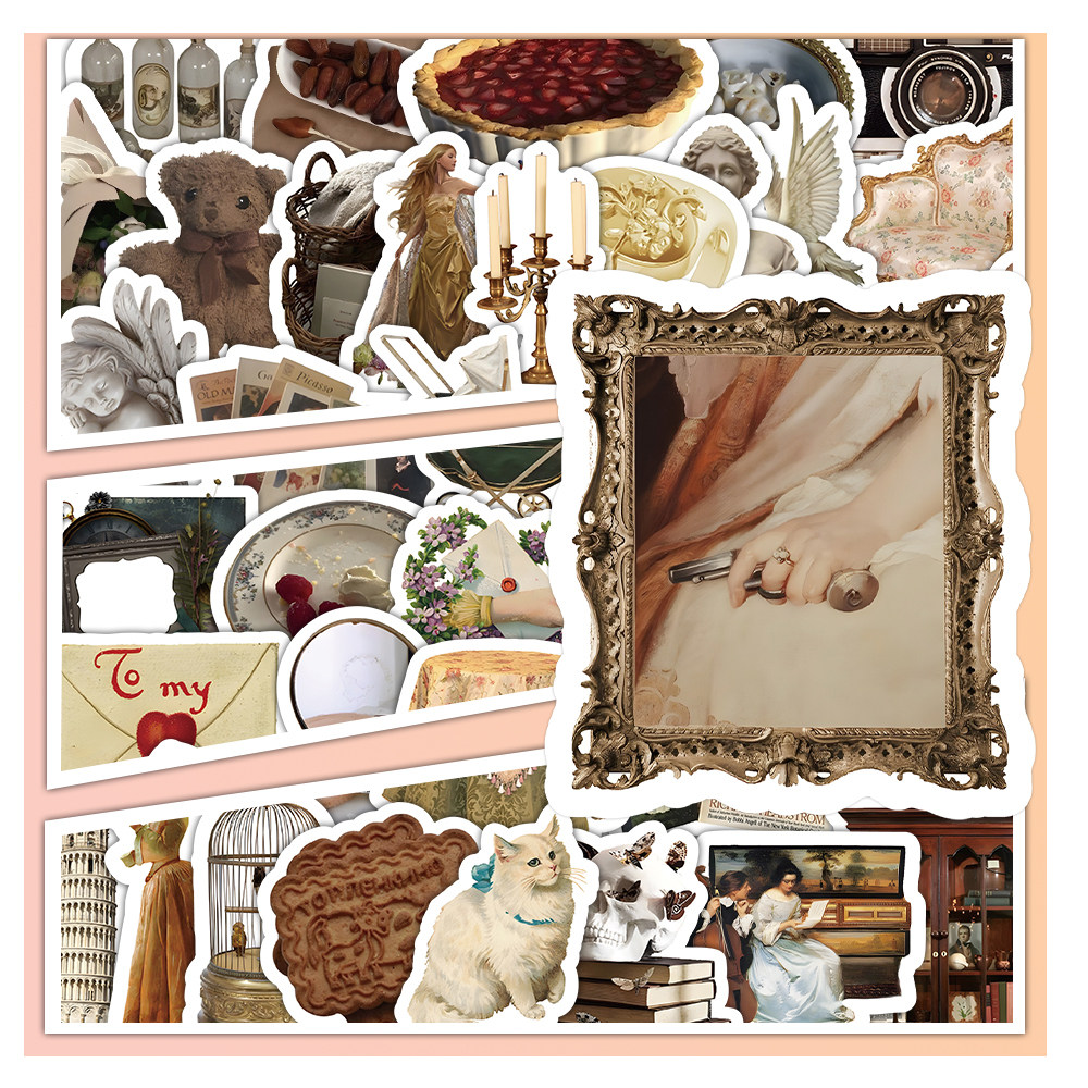 103张复古小物件贴纸宫廷风文艺高级感小清新创意装饰防水贴画diy