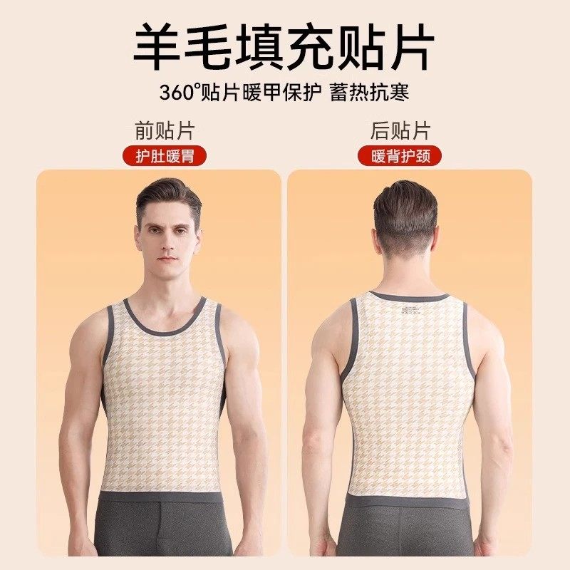 啄木鸟男士德绒保暖背心内衣2025新款羊毛贴片男款打底衫防寒