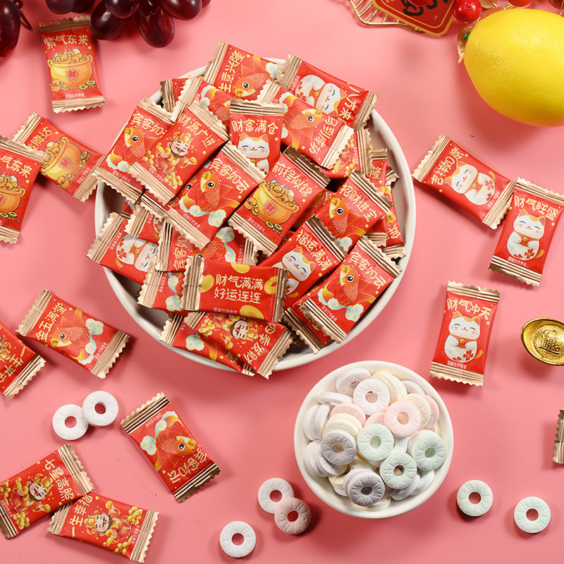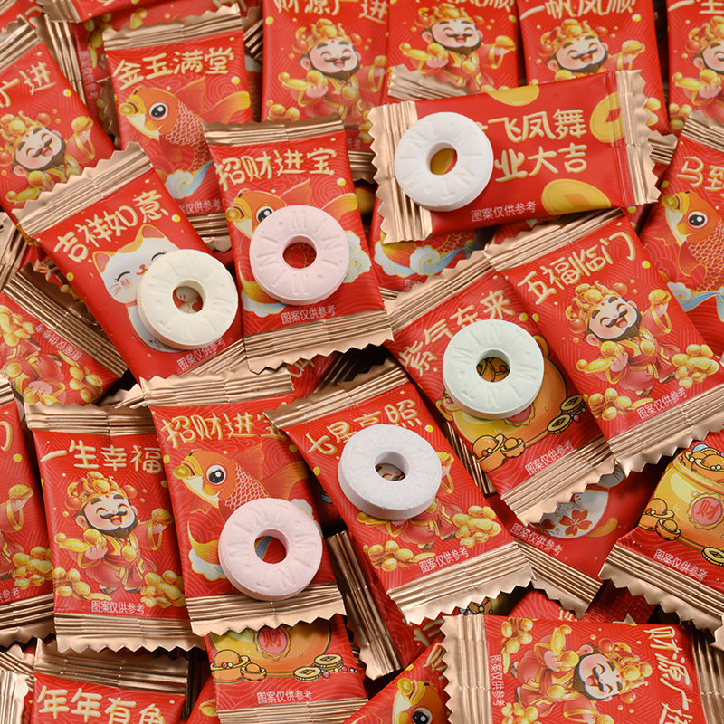 财气语录糖果无糖薄荷糖强劲清新口气商用零食餐饮网红圈圈糖美味
