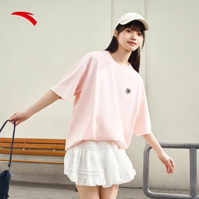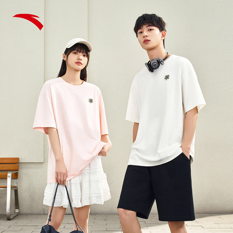 安踏休闲短袖t恤男女同款夏季宽松透气百搭情侣款上衣王一博同款