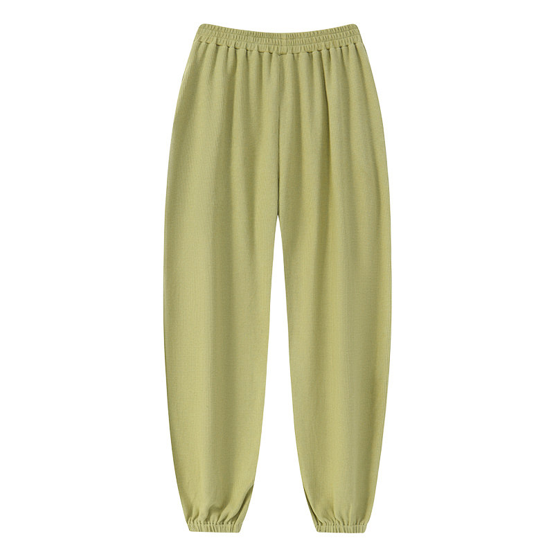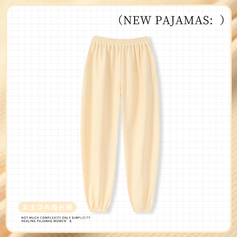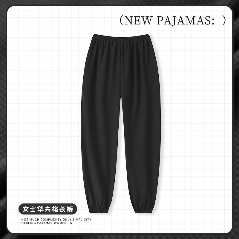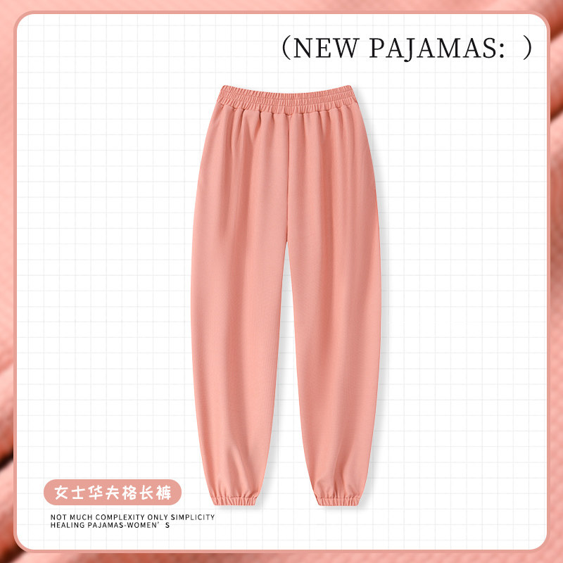 睡裤女长裤春秋休闲束脚宽松可外穿家居裤秋冬华夫格棉居家针织