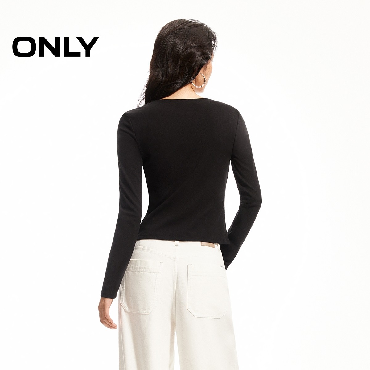 ONLY2026春季新款上衣柔软舒适时尚V领绑带设计修身长袖打底T恤女