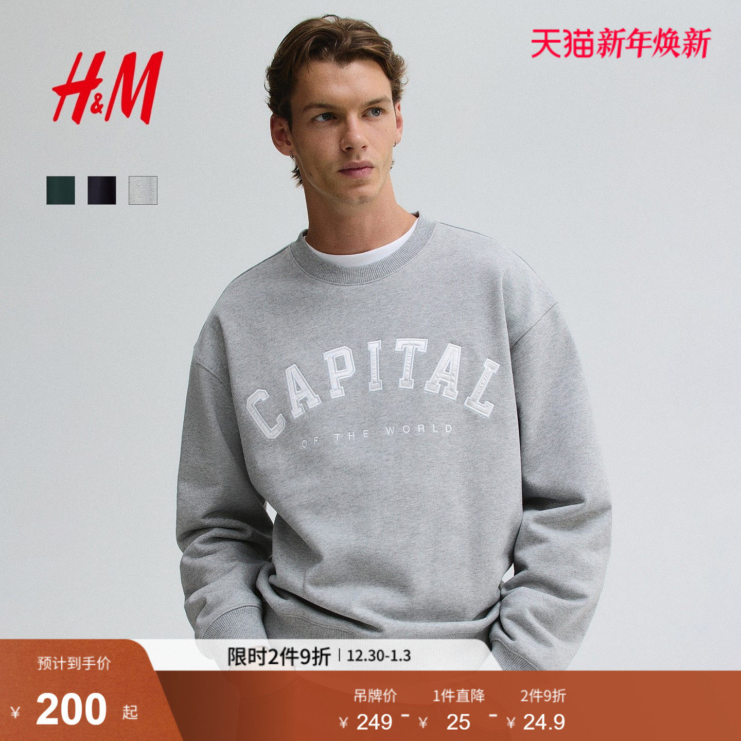 HM男装女装卫衣冬季新款美式刺绣字母印花潮流宽松套衫1300653