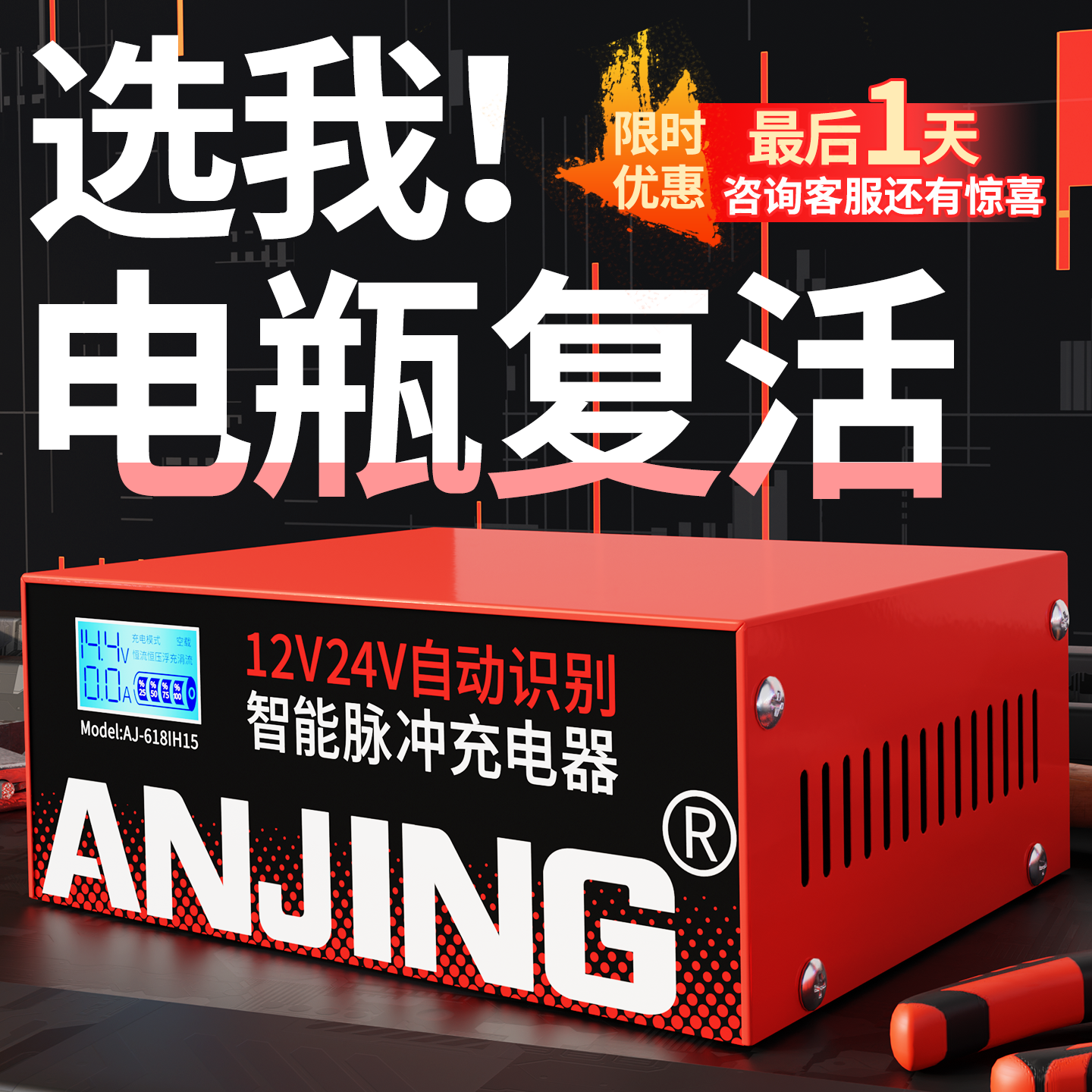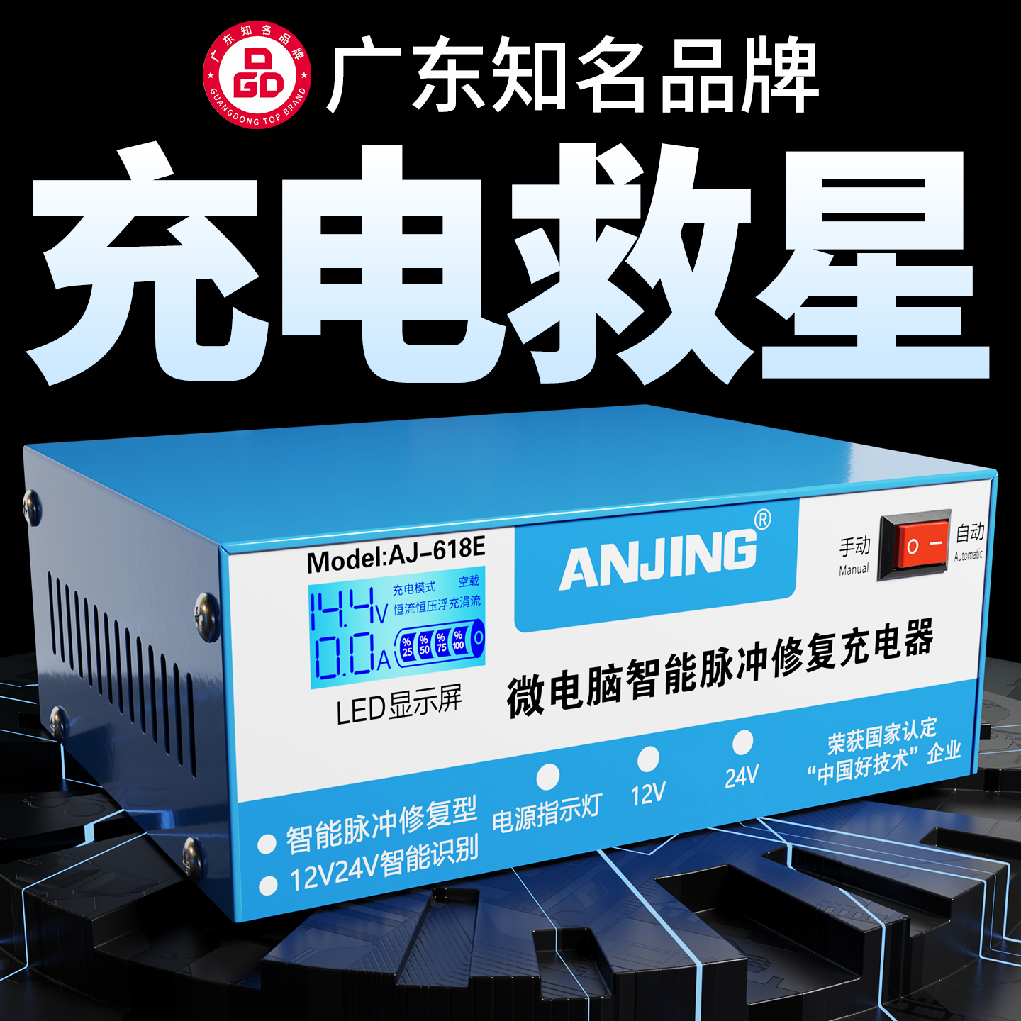 汽车电瓶充电器12v24v伏摩托车充电全智能自动修复型蓄电池充电机