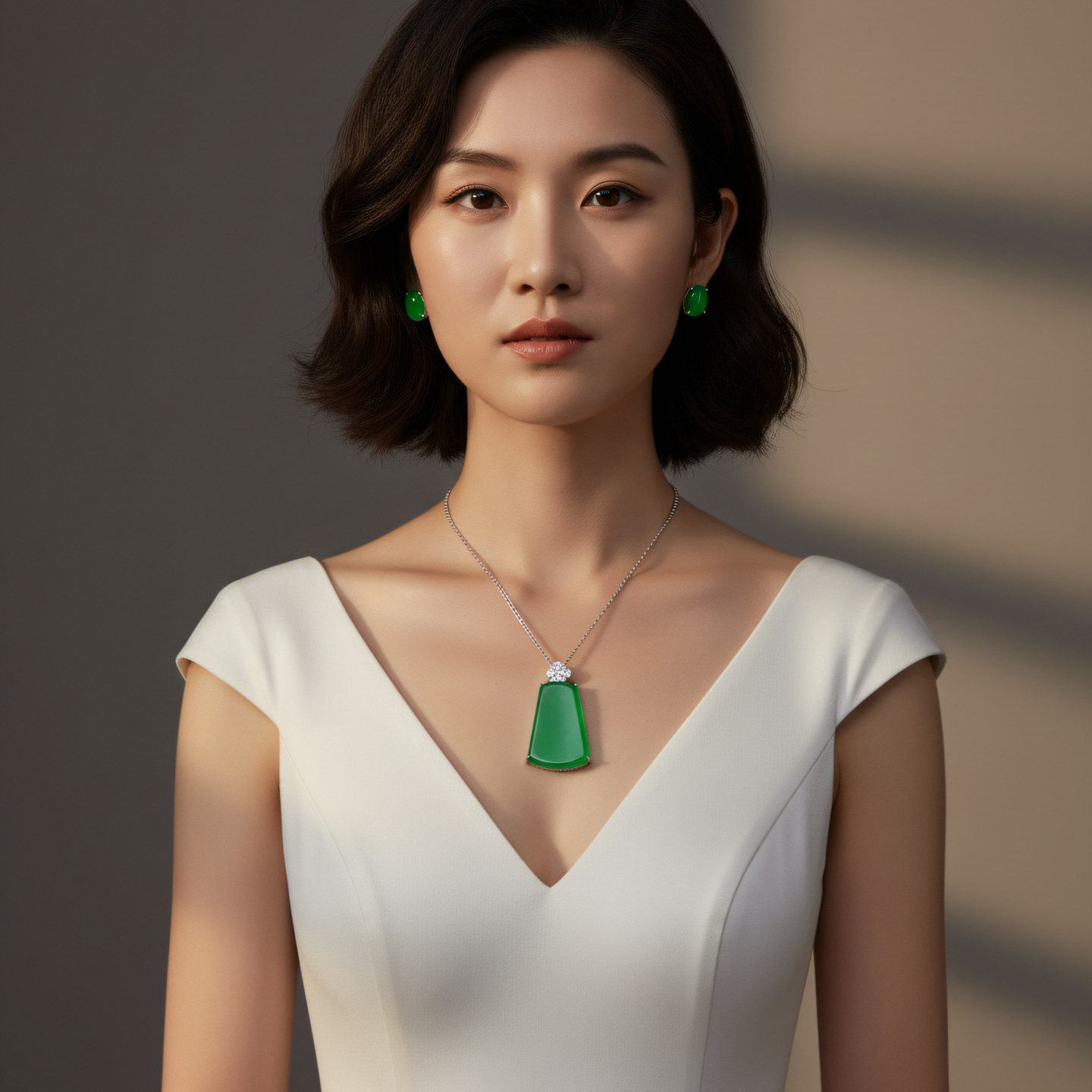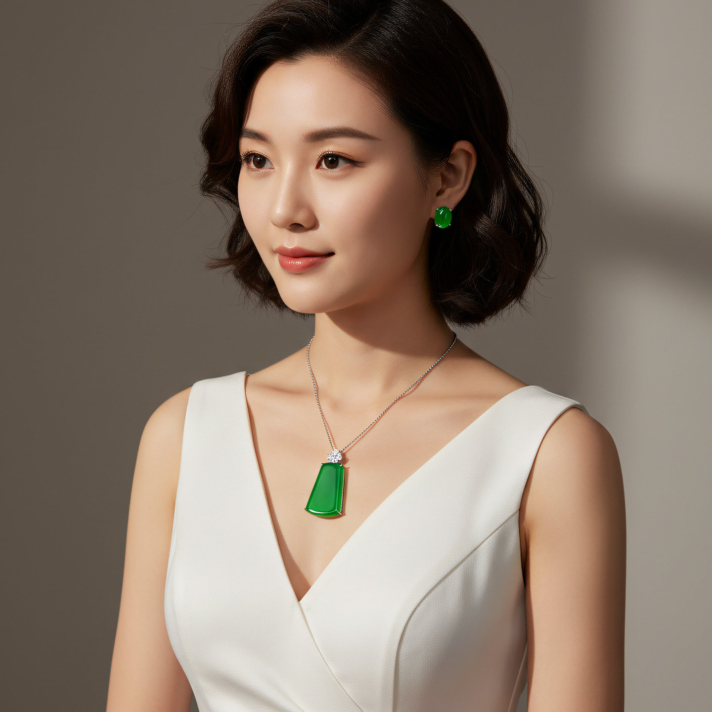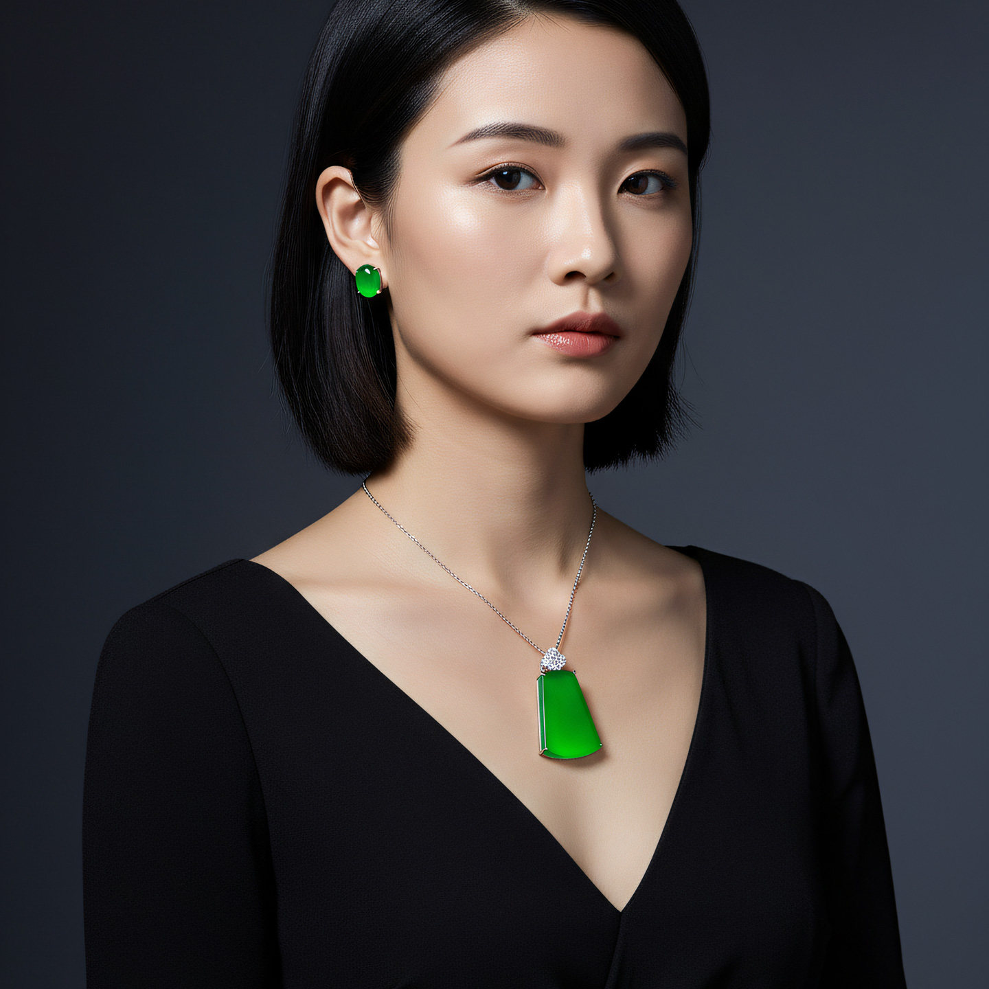AILEQ 925银镶天然玉髓满绿福气平安无事牌吊坠欧若风珠宝项链K10